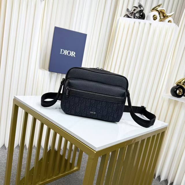 Top-quality original product on the market. Guaranteed imported top-grain cowhide, rejecting split leather and microfiber leather. Rider 2.0 Zippered Messenger Bag. Beige and black Oblique printed fabric with black grained cowhide leather. Item number: 1Espo340Yks_H27E. This Rider 2.0 zippered messenger bag is practical and sophisticated, an ideal item for everyday life. Crafted from beige and black Oblique printed fabric, it features black grained cowhide leather details and a Dior logo on the front. A zippered compartment and a front zippered pocket provide ample storage for everyday essentials. It comes with an adjustable Christian Dior shoulder strap for shoulder or crossbody wear. Body: Cowhide leather, cotton, technical fabric Lining: Technical fabric, cotton, cowhide leather Main zippered compartment Front zippered pocket Interior slip pocket Back slip pocket Adjustable Christian Dior logo nylon jacquard and cowhide leather shoulder strap Front adorned with metallic copper alloy Dior logo Interior adorned with Dior embossed logo Includes dust bag Made in Italy Dimensions: 23 x 17 x 7.5 cm (L x H x W) Main compartment can hold 2 mobile phones and 1 tablet Shoulder strap length: 85 x 133 cm Shoulder strap tip to bag tip length: 35 x 60 cm