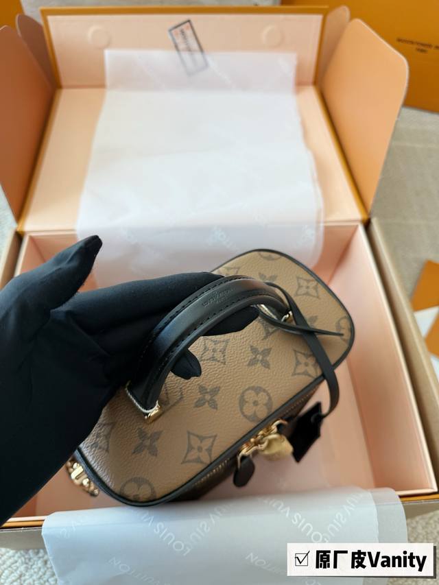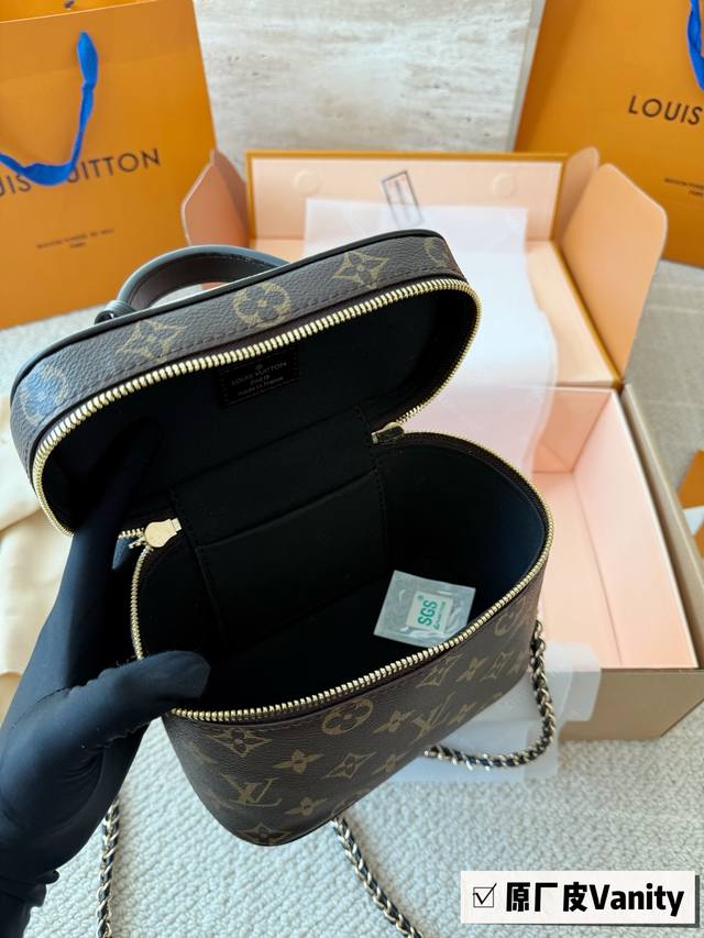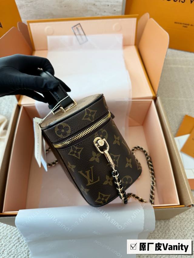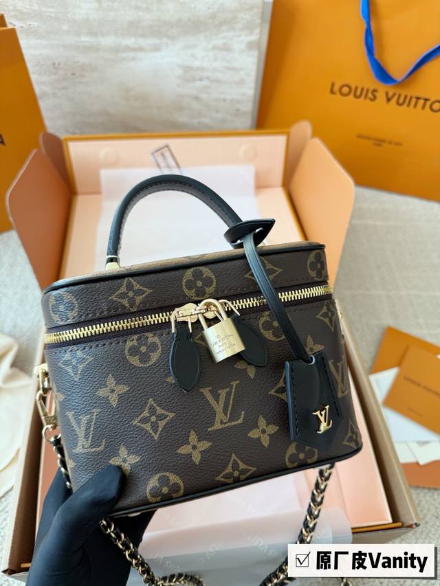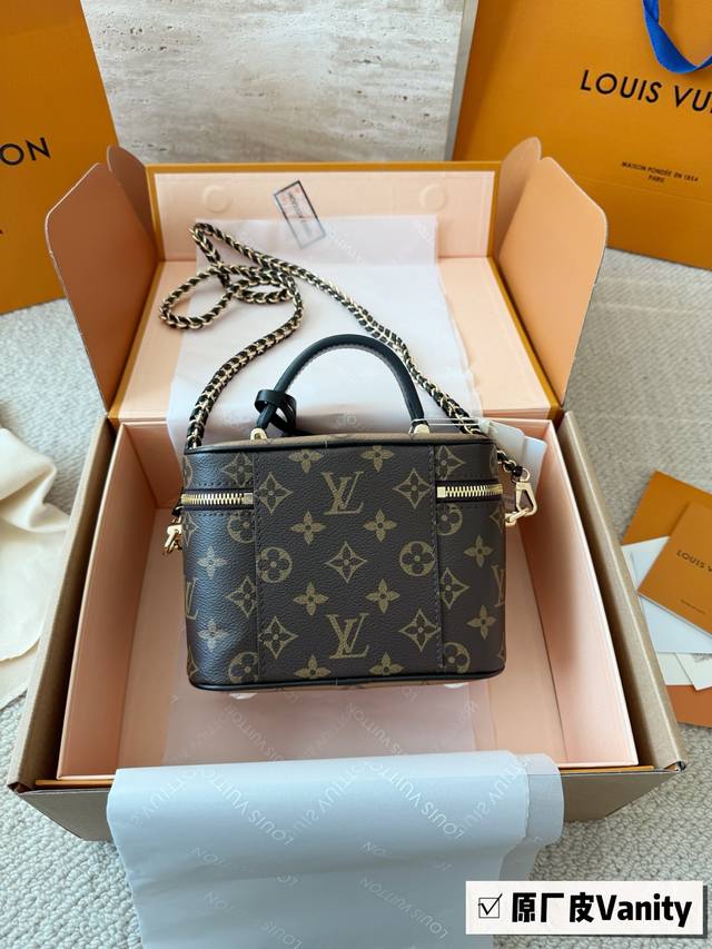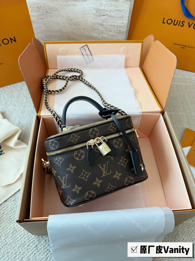 Top-quality original single-piece steel hardware with chip scanning Ddd LV runway style Vanity chain bag cosmetic bag monogram box bag handbag shoulder bag crossbody lunchbox bag Ddd Size: 19*13*11Cm Original cowhide trim DDD