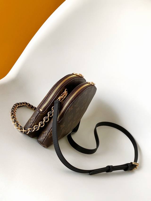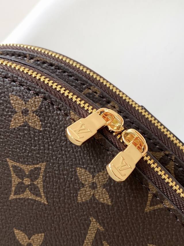 Top-tier original item with price adjustment, code chip M12996. The Be Alma handbag blends the brand's iconic Alma handbag and cosmetic bag designs, playing with urban travel style in the 2025 Cruise collection. Its compact design features a woven chain, allowing it to be carried as a clutch or crossbody with the long shoulder strap. Dimensions: 15 x 7 x 27 cm. Materials: Monogram canvas, cowhide leather trim, fabric lining, metal hardware. Shoulder strap: Detachable and adjustable. Strap half-length: 46.0 cm. Strap half-length adjustable to: 51.5 cm. Chain: Detachable. Chain half-length: 24.0 cm. This product is made in one of the following countries: France, Spain, Italy, or the United States.