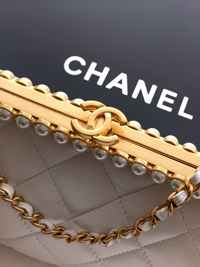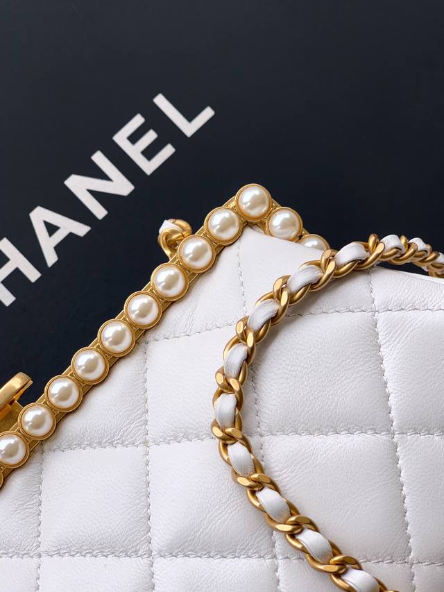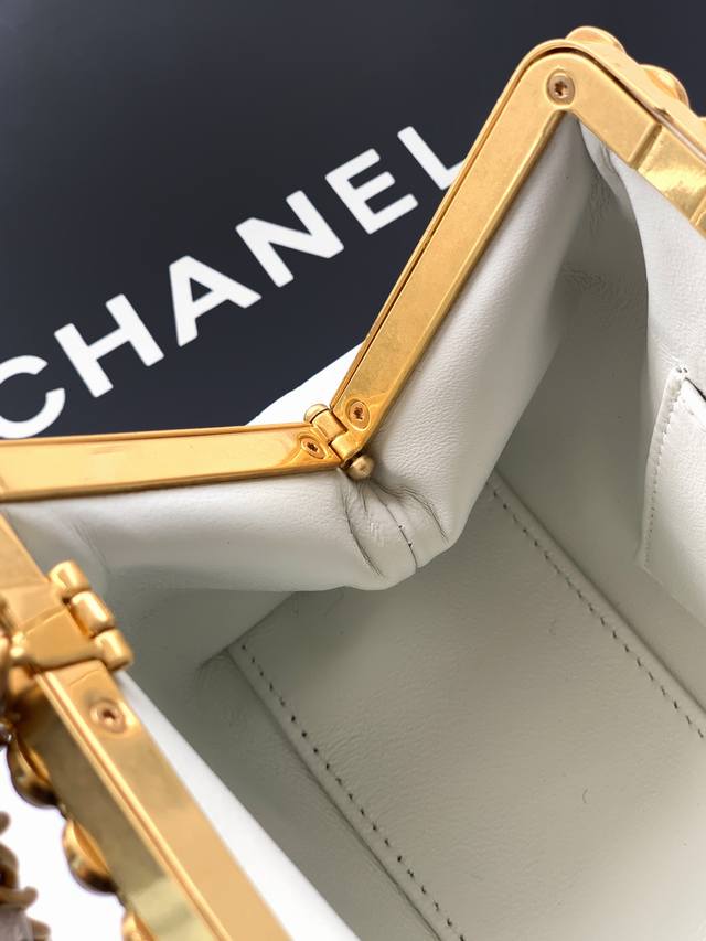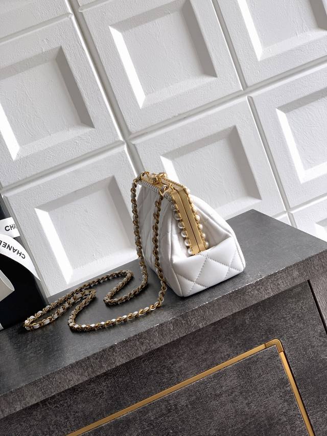 Top-tier original milkshake white Ohanel 26C pearl high-end evening bag. Exquisite materials and craftsmanship. Classic lambskin, exquisite handcraftsmanship: The high-end handcraftsmanship series utilizes beads to miniaturize art onto the bag. Poetic elegance! This style highlights magnificence and artistry. Light and shadow are the threads, pearls the fabric, weaving a dreamlike night. This evening bag, radiant within its small space, sways gracefully with every step, suitable for pairing with formal gowns or adding a touch of rebellious rock 'n' roll. It's not just an accessory, but a miniature work of art held in the palm of your hand, telling an eternal story of individuality and beauty. Dimensions: 10 x 20.5 x 7.5 cm.