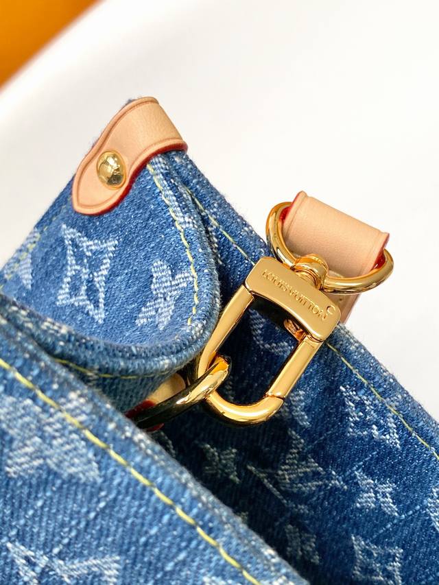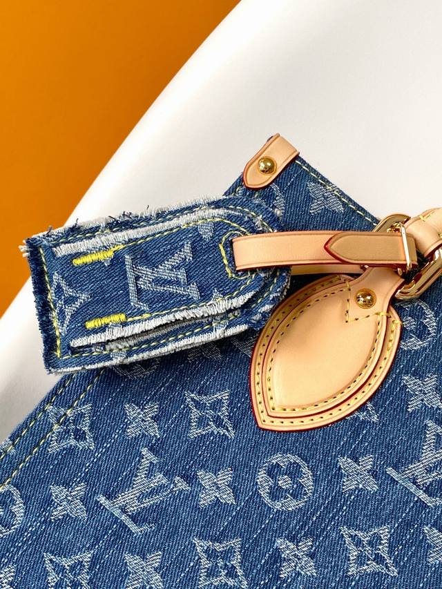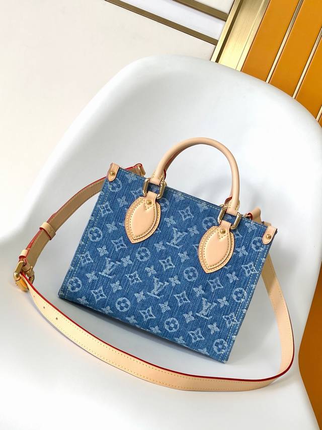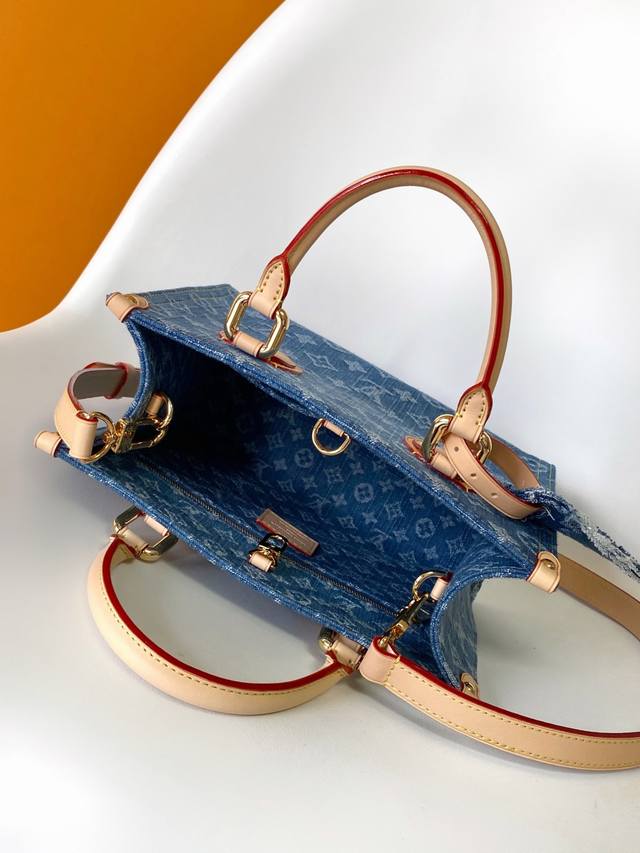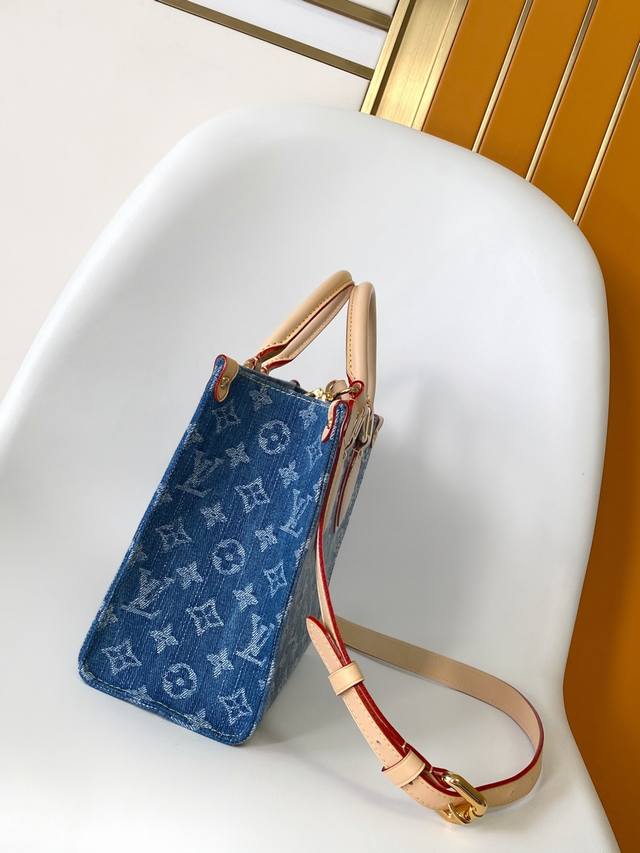 Top-tier original single dynamic 163 This Onthego small handbag features classic Monogram denim outlined with cowhide leather trim, gleaming metal hardware, and a magnetic snap flap closure. Ample space can accommodate a tablet and everyday essentials, and the detachable shoulder strap allows for hand-carrying or crossbody wear. Features include: fabric trim, cowhide leather trim, fabric lining, metal hardware, hook and loop closure, zippered inner pocket, two inner pockets, detachable name tag, and can hold an 8.3-inch tablet, smartphone, Sarah's long wallet, keys, lipstick, tissues, and small books. Shoulder strap: detachable and adjustable! Model: M14633; Dimensions: 25X19X11.5Cm47 DDD
