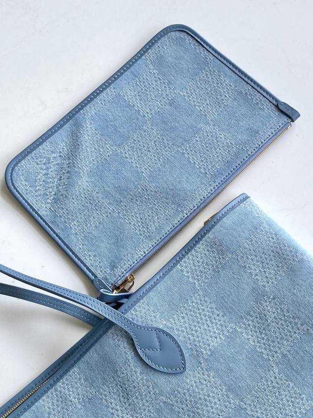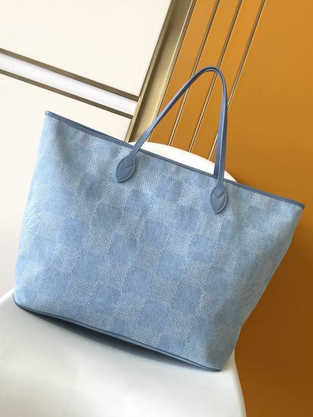 Top-tier original single dynamic 163N00198 This Nevereverfull tote bag features a chic check pattern in Damier Denim 3D cotton canvas, showcasing its elegant style with polished metal hardware and leather trim. The zippered opening offers ample space, while a detachable cotton denim canvas pocket helps secure your belongings. Dimensions: 60 x 38 x 23 cm (Length x Height x Width) Damier Denim 3D Cotton Canvas Leather Trim Fabric Lining Metal Hardware Double Zipper Closure Padlock Detachable Brand Label Zippered Interior Pocket Detachable Pocket in Cotton Denim Canvas Handles: Double Handles This product is made in one of the following countries: France, Spain, Italy, or the USA.