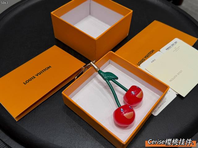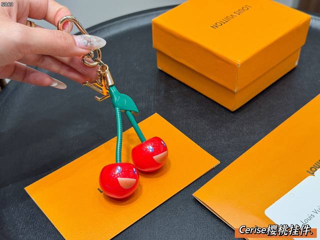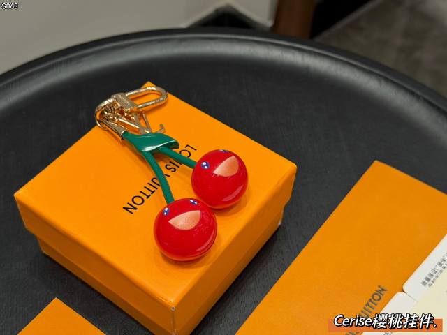 With Box Ddd The Louis Vuitton Cerise Cherry Charm is a reissue from the Louis Vuitton x Takashi Murakami collaboration. Made of acrylic glass and lustrous metal, it features a playful red cherry paired with green leaves and adorned with the LV logo, showcasing Murakami's signature style. The spring clasp design makes it easy to hang a bag or keys, adding a trendy touch to everyday wear. Small and cute, it's perfect for gifting or collecting; a subtly luxurious yet practical item, it's loved by young people. DDD
