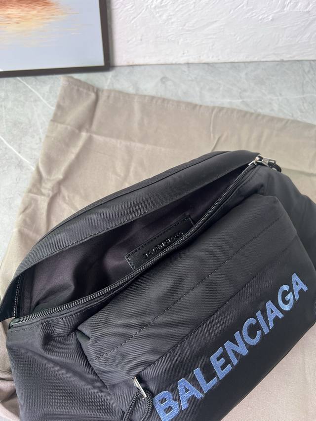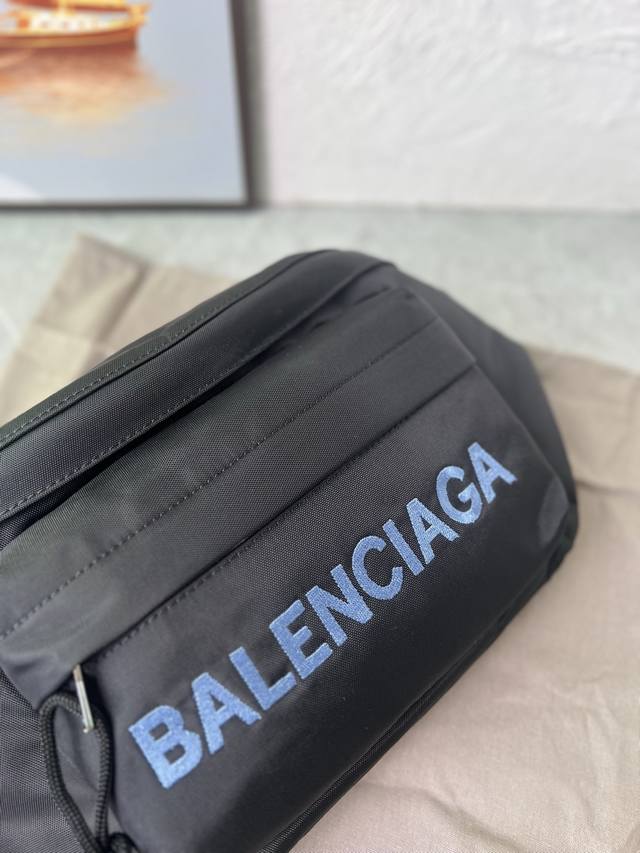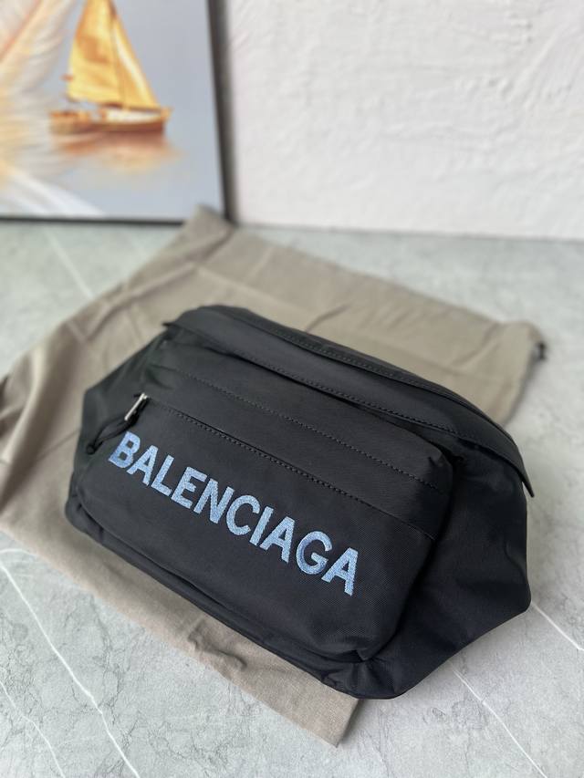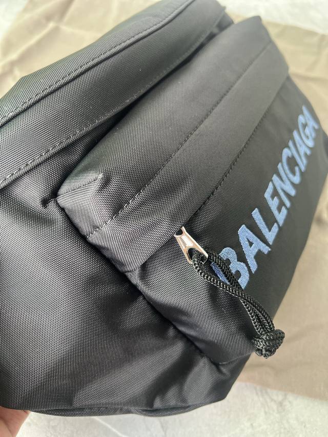 Original Single Item, High-Quality DDD Balenciag Paris Explorer Waist Bag, Black DDD Unisex Style, Silk Screen Printed with 3D Embroidery DDD Size: 24*9*18Cm DDD