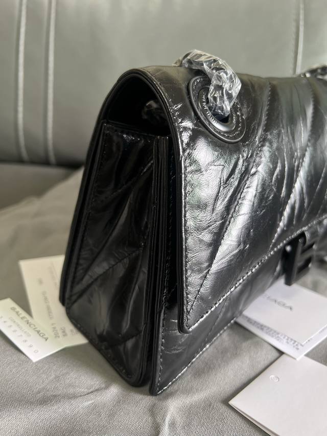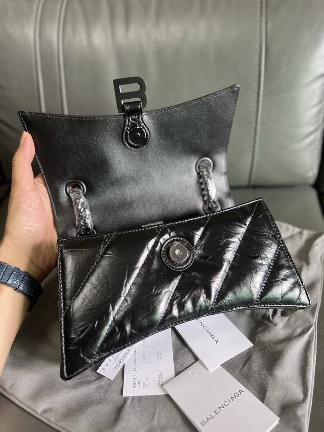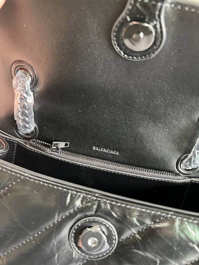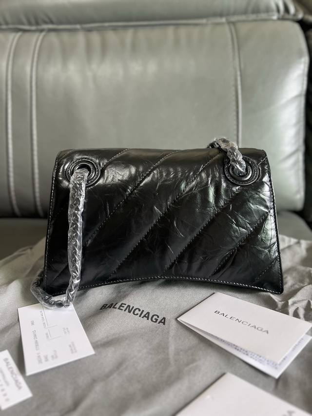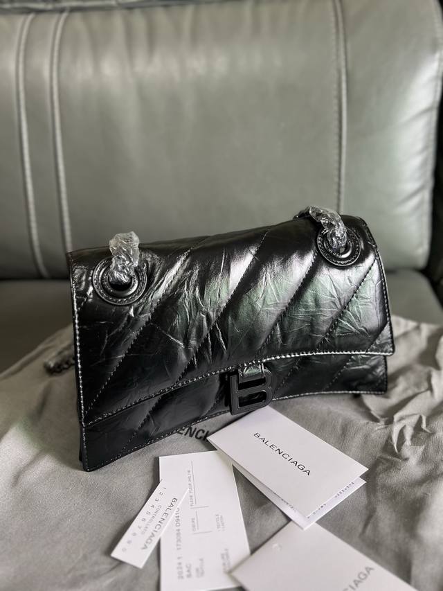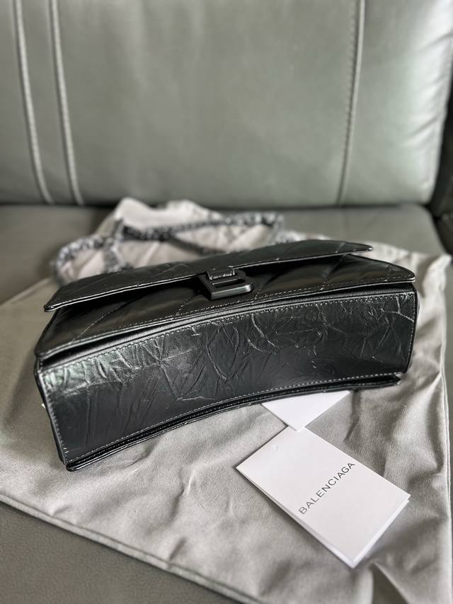Original Single Item, High-Quality DDD Balenciag* Paris Sega Crush Matte B Logo Metal Hardware Quilted Embossed Calfskin Chain Bag Crossbody Shoulder Bag Small Women's Black Classic hourglass silhouette yet as soft as a pillow, with an aged origami texture that can be crumpled and unfolded, durable, everyday, and versatile. The Crush bag reinterprets the classic design with a deconstructed approach, continuing the arched bottom and pointed edges, removing the handle but retaining the B clasp. DDD The chain can be folded through the loops to be used as a handbag or underarm bag, or adjusted to a single chain for a shoulder bag or crossbody bag, offering four ways to wear the bag. DDD Style Number: 35122 DDD Dimensions: 25.5*10*15.5Cm DDD