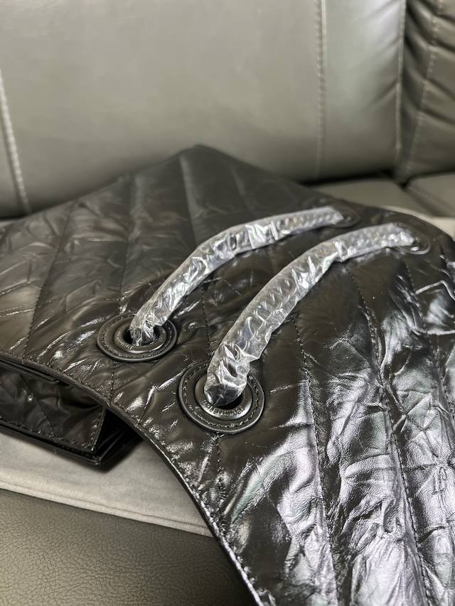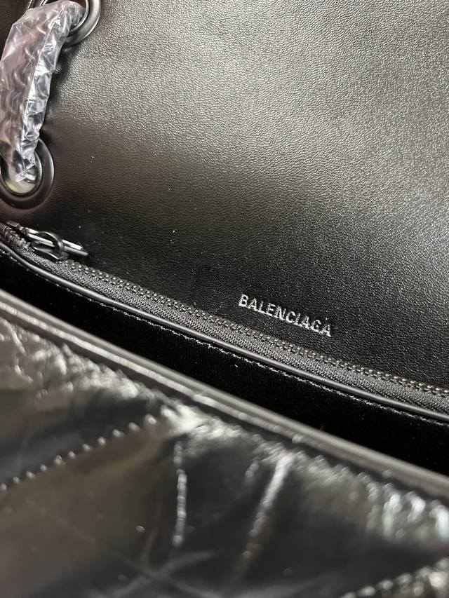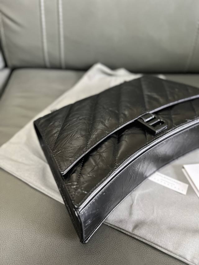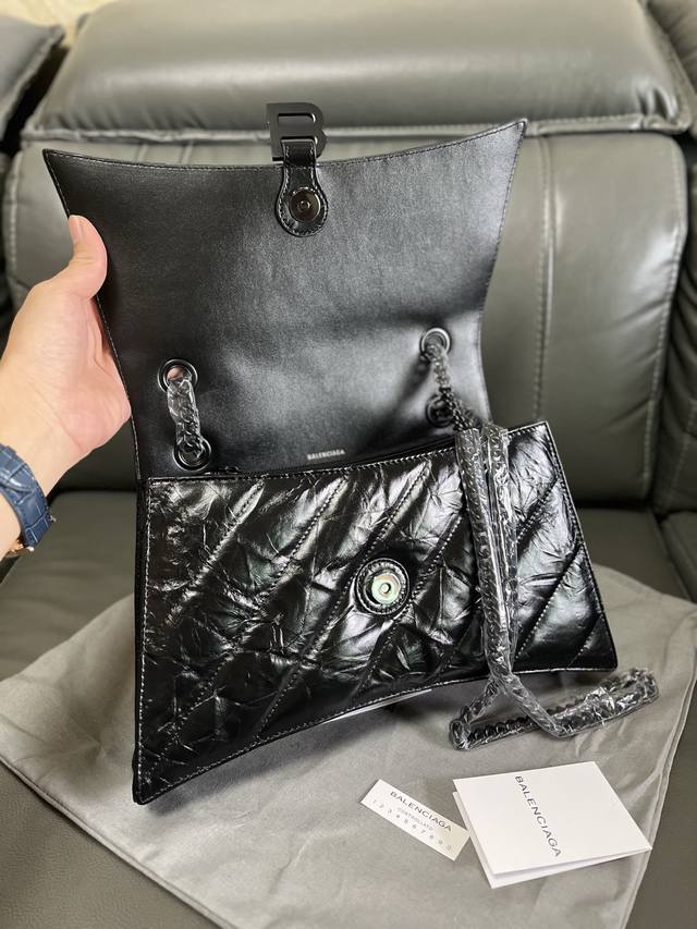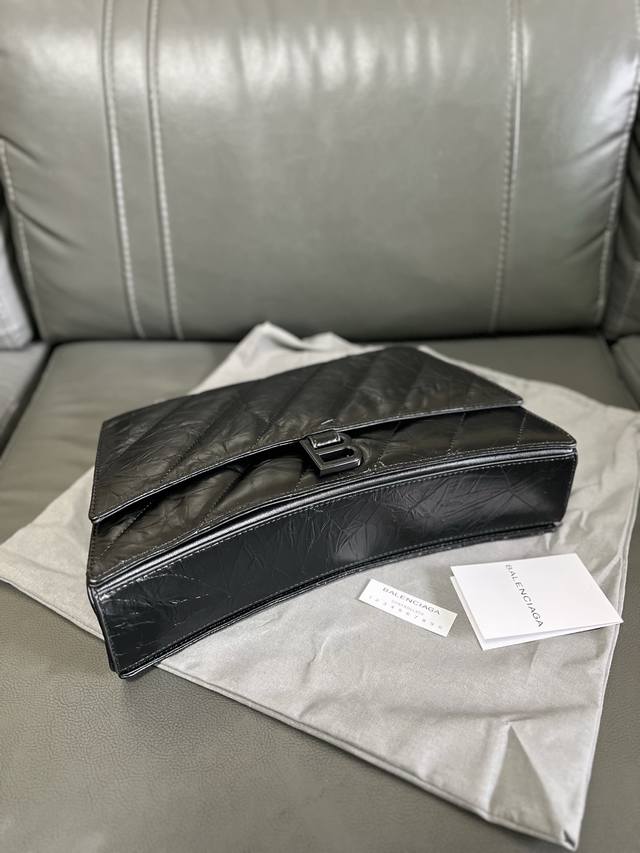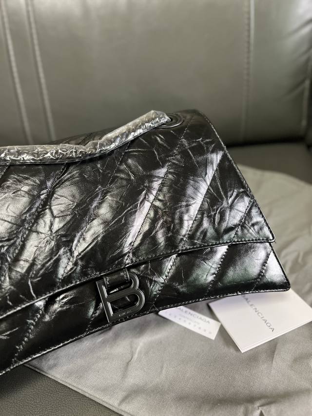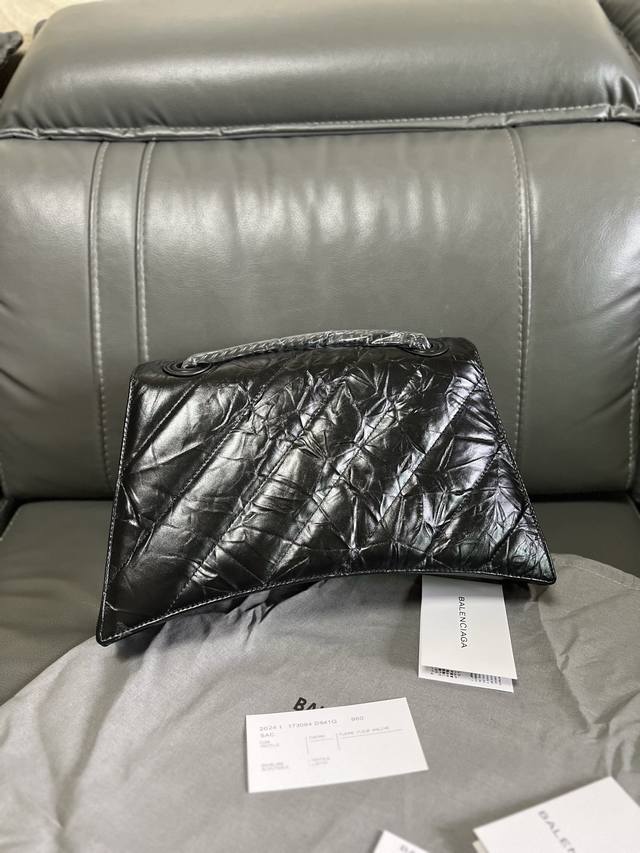 Original Single Item, High-Quality DDD Balenciag* Paris Sega Crush Matte Pillow Bag Niki Bag Cowhide Chain Shoulder Bag Medium Women's Black Crush DDD The classic hourglass silhouette is as soft as a pillow, with a distressed origami texture that can be crumpled and unfolded, making it both stylish and versatile for everyday wear. The Crush bag reinterprets the classic design with a deconstructed approach, retaining the arched bottom and pointed edges, removing the handle but keeping the B clasp. DDD The chain can be folded through the loops to be used as a handbag or underarm bag, or adjusted to be a single chain for a shoulder bag or crossbody bag, offering four ways to wear the bag. DDD Style Number: 39322 DDD Dimensions: 32*13*20.5Cm DDD