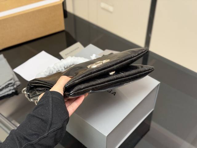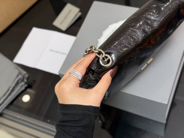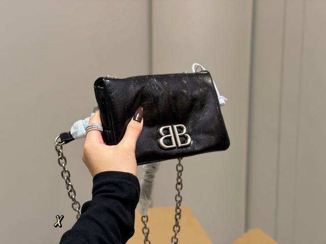 Comes with folding box/airplane box. Size: 17.11cm 26.18cm. Balenciaga Monaco pays homage to the classic motorcycle bag series with a powerful new arrival. Adjustable woven shoulder strap with eyelets. External leather card holder.