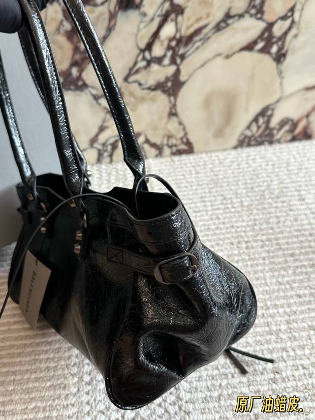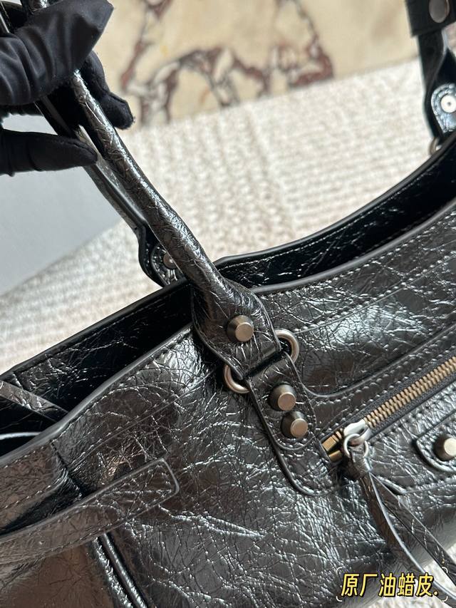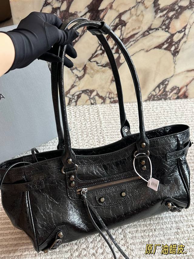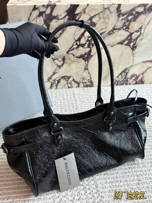 Oil-waxed leather with box. Size: 32*16cm. Balenciaga's newest tribute to classic motorcycle bags. So cute! A versatile must-have. A stylish underarm hobo bag.