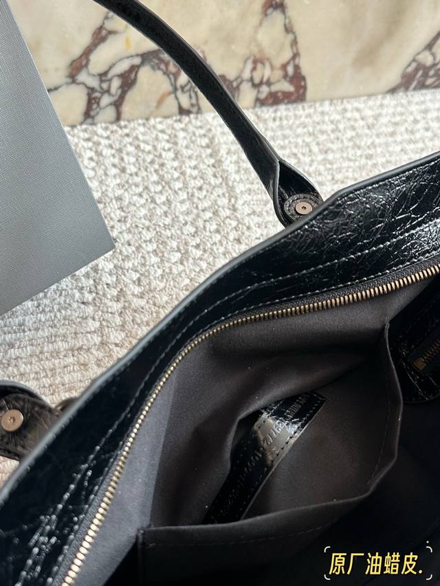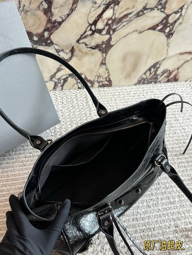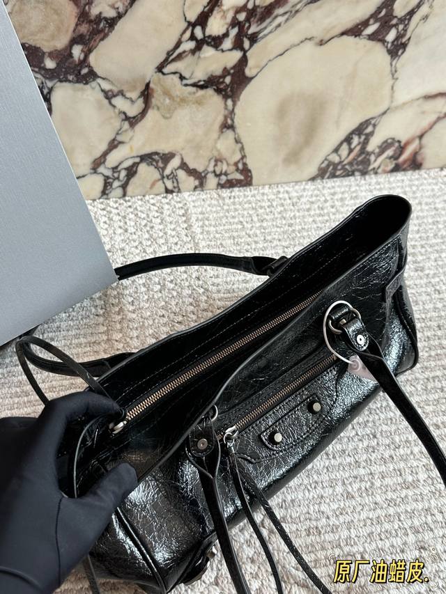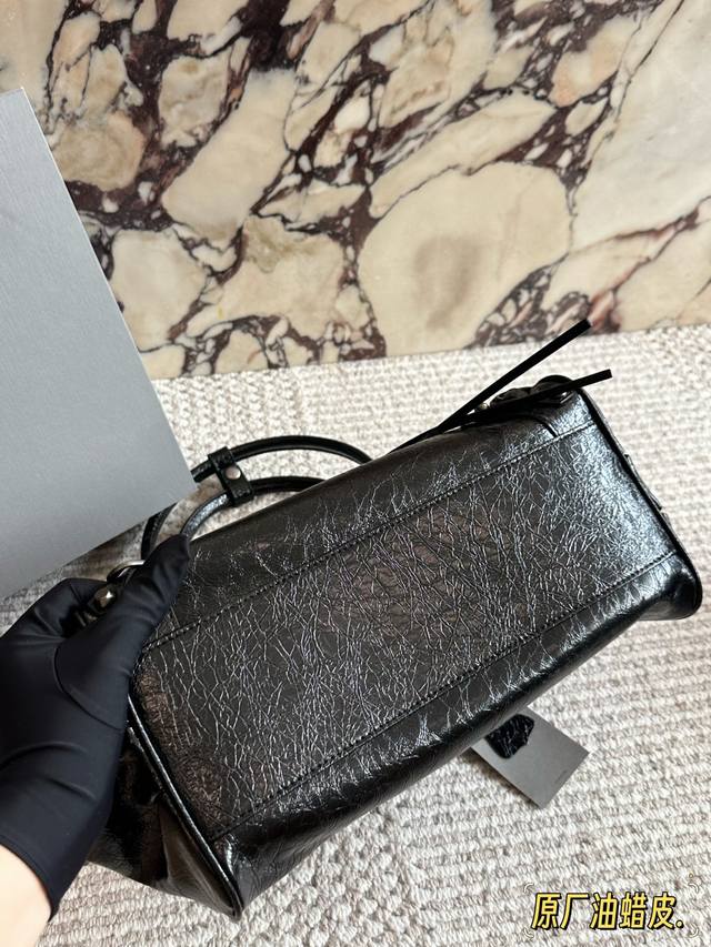 Oil-waxed leather with box. Size: 32*16cm. Balenciaga's newest tribute to classi