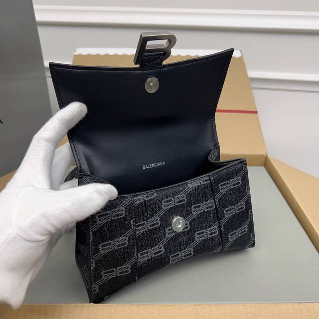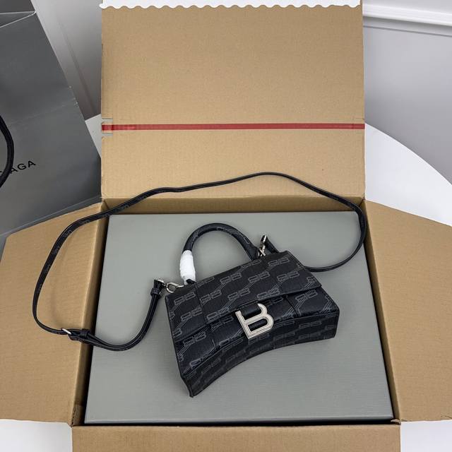Exclusive Background_Actual Product Photos Small Size: Black Leather With Silver Hardware, Upgraded Version Of The Top-Tier Original Design, Comes With Full Packaging. Balenciaga's Highly Anticipated Hourglass Sandglass-Shaped Bag For This Season, Featuring A Unique, Distinctive Curved Shape That Stands Out Immediately, Making It Incredibly Stylish And Eye-Catching!The Surface Is Smooth And Flat, With A Crescent Moon Shape. A Metal B-Shaped Pull Ring Hangs From The Top, And The Leather Texture Is Exceptionally Soft And Elegant. Don't Hesitate To Purchase!