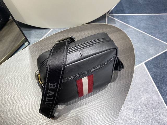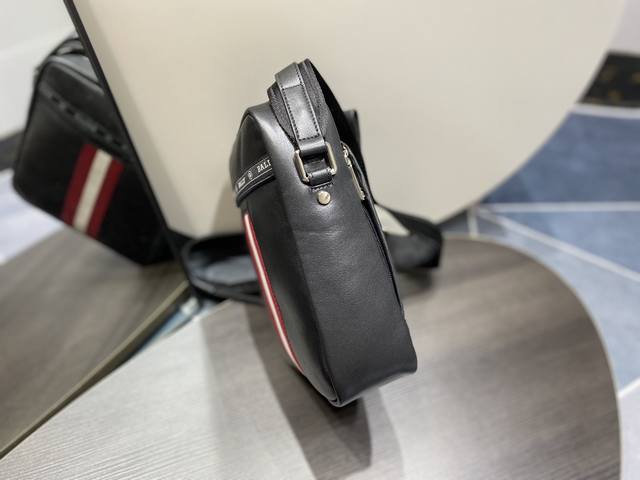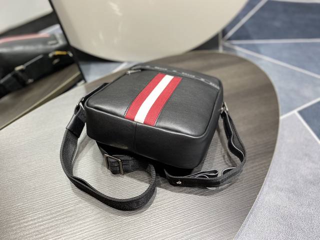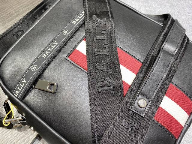 Bally Men's Crossbody Bag Size: 22 x 7 x 25cm. Crafted from top-grain cowhide with custom hardware, the bag features a zipper closure for added convenience and security. The front is embellished with the brand's signature red and white Trainspotting pattern and the brand logo. The adjustable strap allows for shoulder or crossbody carry. The overall look is simple and elegant, perfect for both business and casual wear.