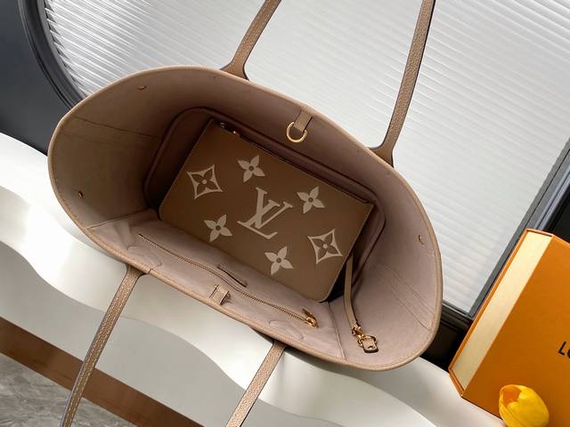 Neverfull medium shopping bag! The redesigned inner bag features a fresh fabric lining and vintage details inspired by the archives. The most noteworthy feature is the detachable zipper clutch, which can be used as a delicate clutch or as an additional pocket. 32X29X17Cm