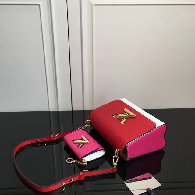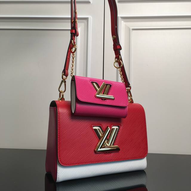 Two-piece Gemini Bag Water Ripple This chic small handbag hides a secret: it is larger than it actually looks. M50280 Double Lower Bag Two-piece Set Colorblock Water Ripple Twist Women's Bag The cleverly designed ripple bottom provides extra space for placing necessities. The variable chain handle can be carried diagonally or elegantly on the shoulder. Size: 23X18X8Cm