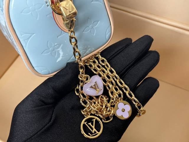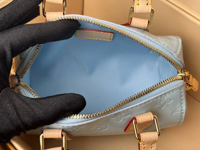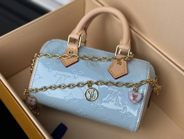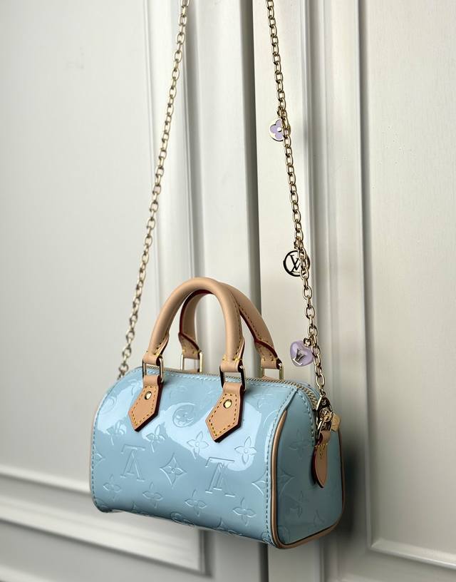 M83000 Blue Top Original Dynamic Code Counter Synchronized Electronic Chip Internal Code The Nano Speedy is a miniature version of one of the House's most famous travel bags, made from softly colored Monogram Vernis leather. Shiny leather with Monogram embossing, paired with a natural leather top handle and a removable gold chain, embellished with charms. The Nano is the perfect size for a phone and small wallet: 16-10-7.5Cm