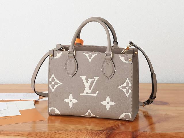 P Variable Chip Edition Top Original, Enhanced Edition Onthego Small Tote Bag Inspired by the classic Sac Plat handbag from 1968, the miniature version is made of Monogram Empreinte leather with Giant Bicolor Monogram pattern, which can accommodate daily necessities such as iPad Mini. Flexible handles and detachable shoulder straps enrich the carrying options.