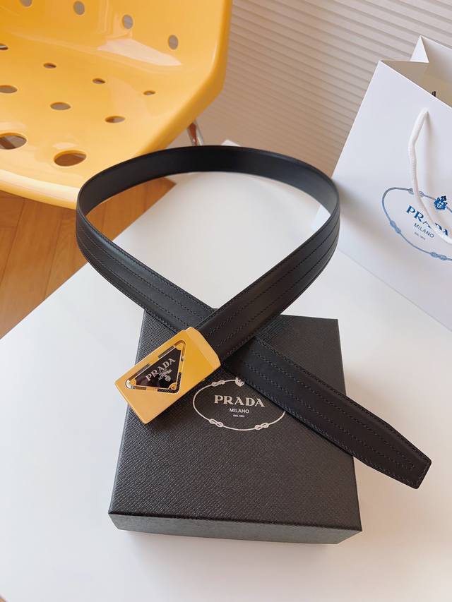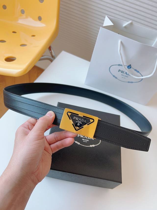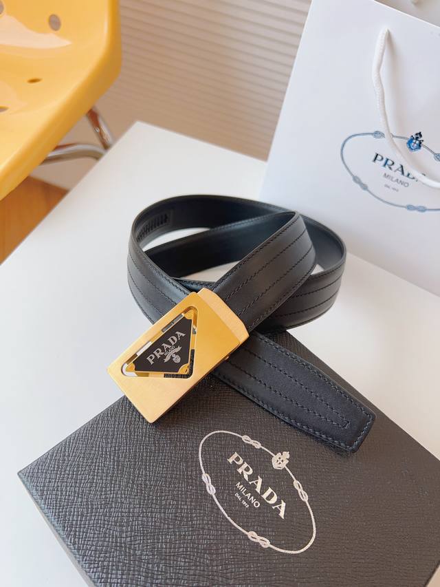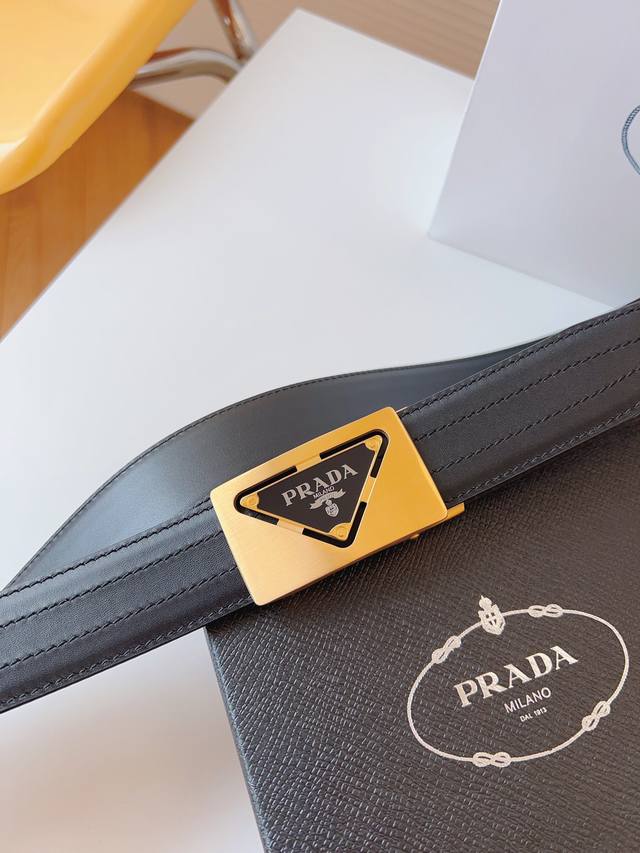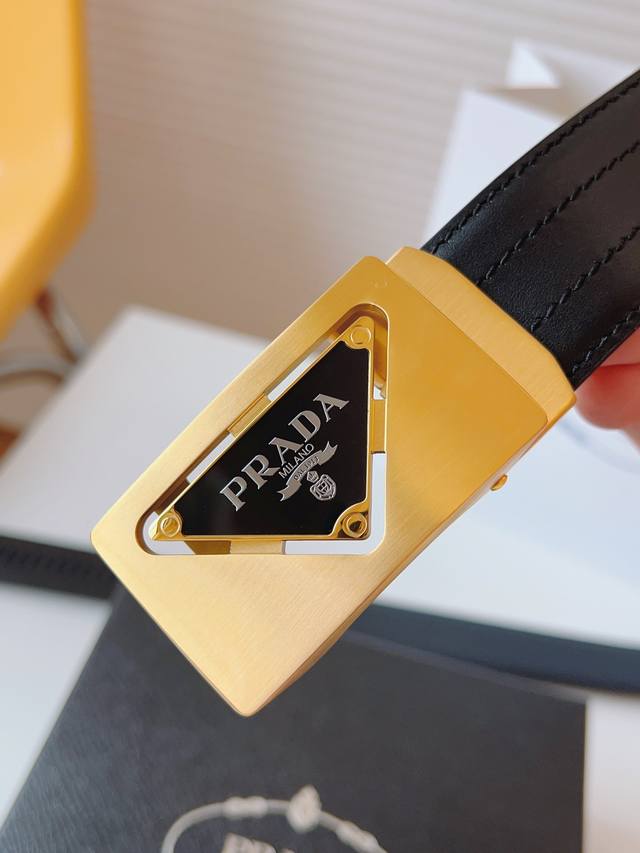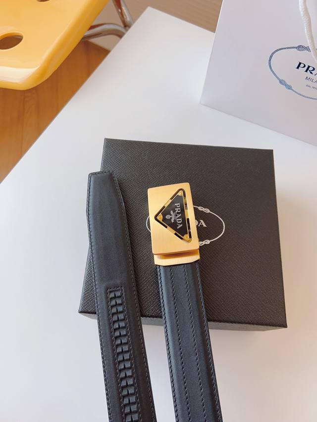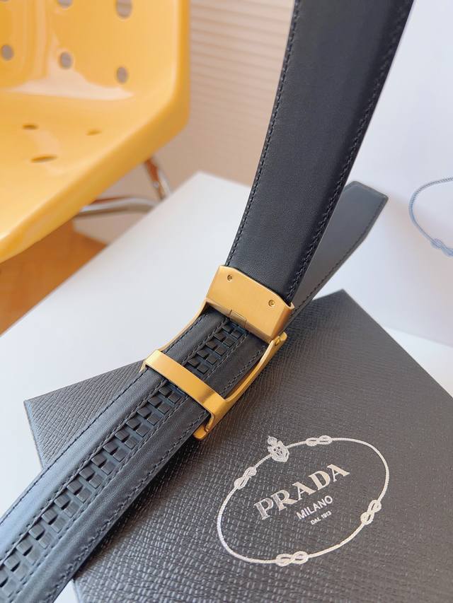 Prada double-sided Italian imported first-layer calfskin, with vacuum-plated pure steel automatic buckle, classic style, available at the counter, top quality in the market, support inspection