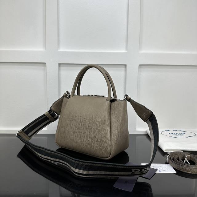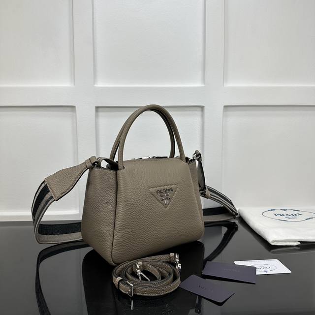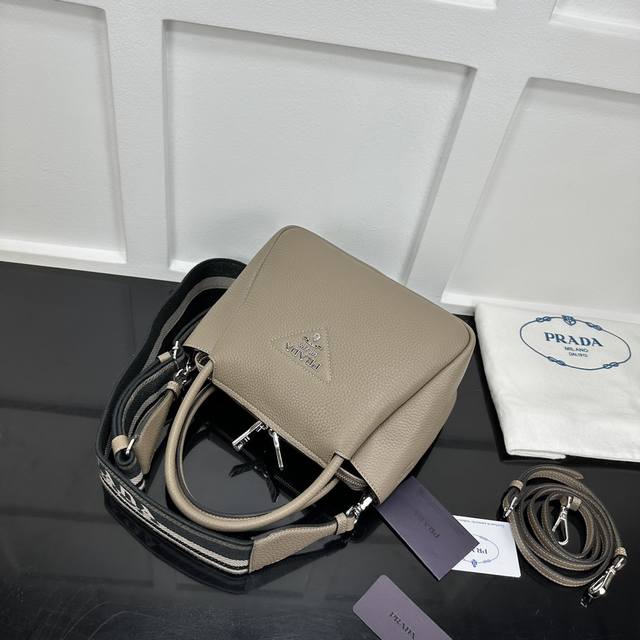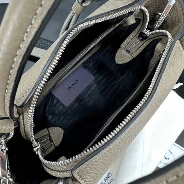 Prada new counter quality, top original deer grain leather, original stainless steel hardware, real shot, model number: 1Bc145 gray leather double shoulder strap size: W23Xh21Xd10Cm,