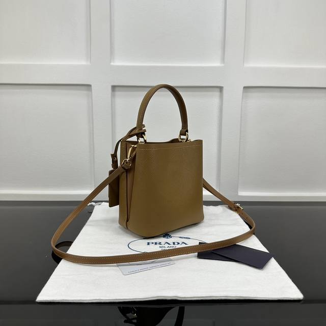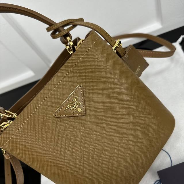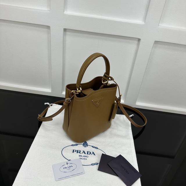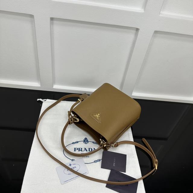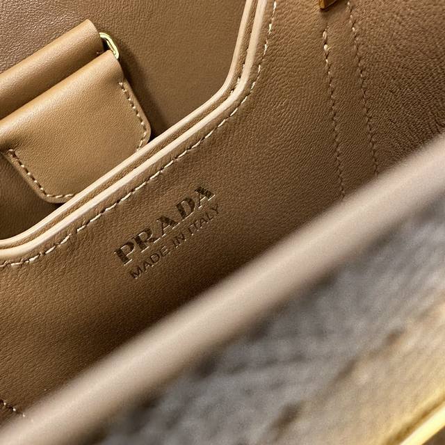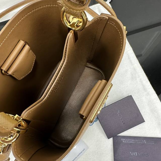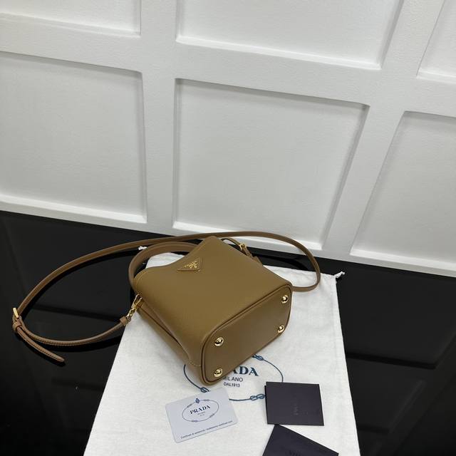 Prada new counter quality, top original leather, original hardware, real shot, model number: 1Ba217 brown cross pattern, with brown sheepskin lining mini bucket bag 165 OEM code size: W18Xh17Xd10.5Cm,