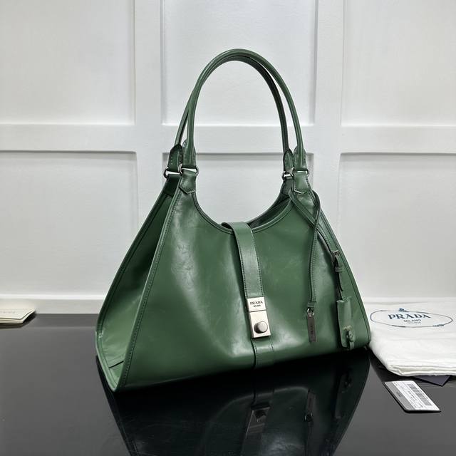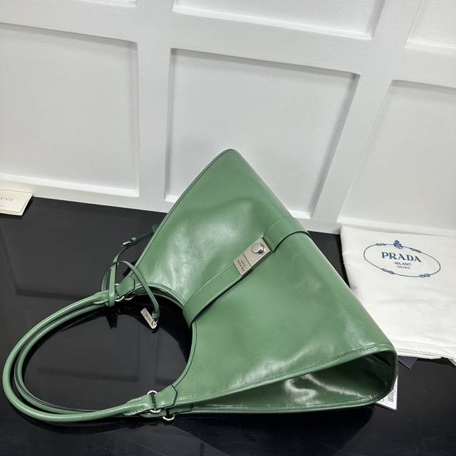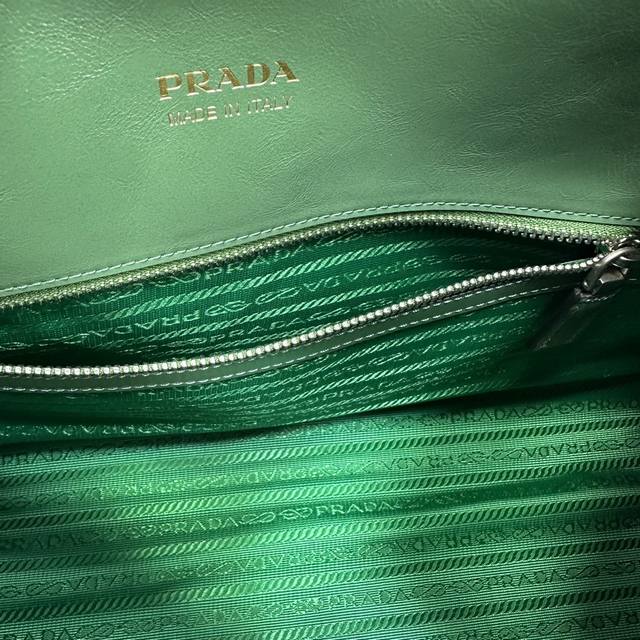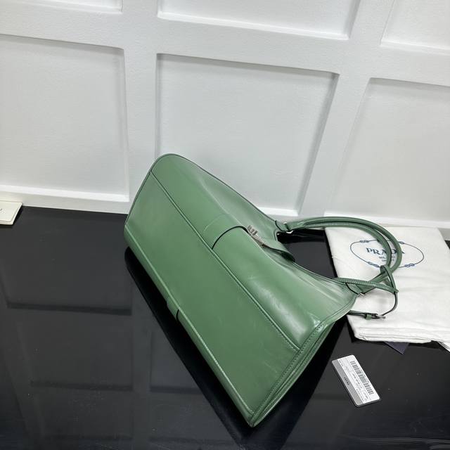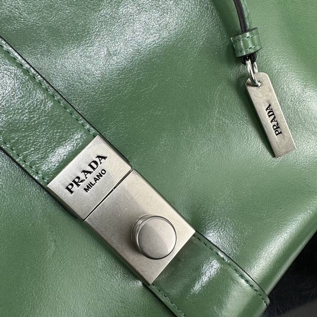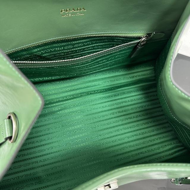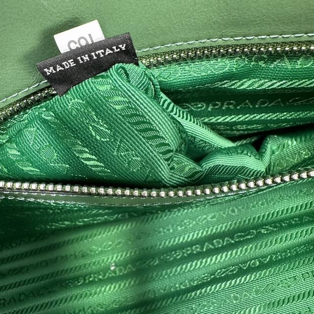Prada new counter quality, top-grade original leather, original hardware, real shot, model number: 1Bg570 grass green imported waxed leather size: W39Xh24.5Xd14Cm,