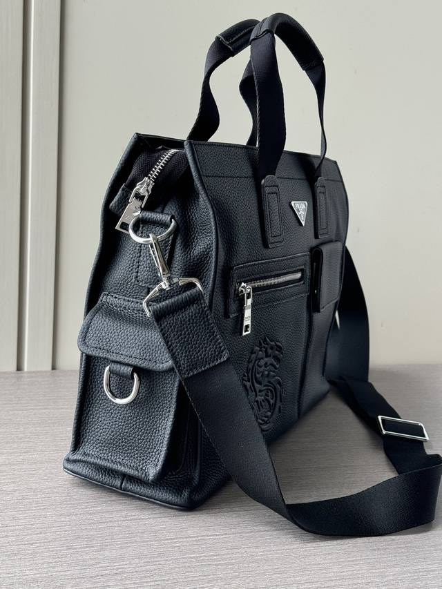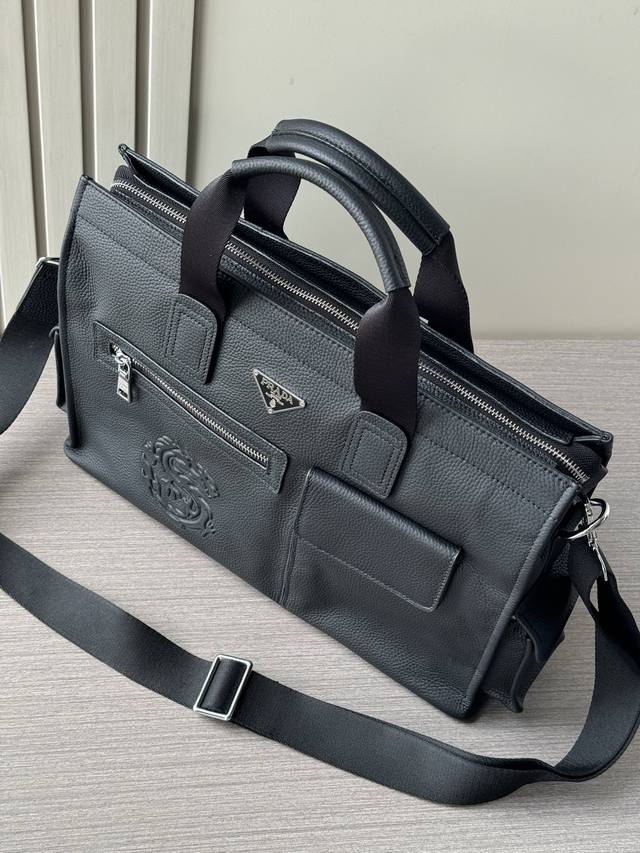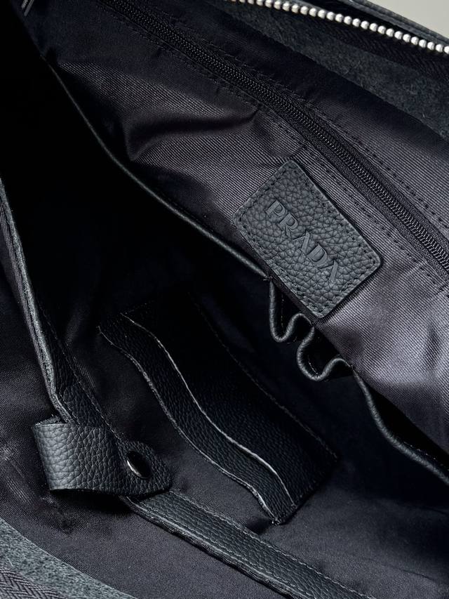 The latest hot Prada handbags from the top counters are shipped in large quantities. We are not good at talking about counter goods and top original goods on paper, please let the goods speak. The style can be copied and plagiarized, but the materials and workmanship cannot deceive those who understand. The inside and outside are all top materials, top imported original leather, Italian imported first-layer calfskin, litchi pattern, ultra-high-definition hardware logo, high-end bronze hardware, dedicated high-end lining, top oil edge, super smooth, watch pockets on both sides, top designers create unique leather, imported first-layer cowhide style, super large capacity space, multi-compartment design, laptop slot + folder slot + dark zipper slot, trolley case slot on the back, a must-have for traveling, super comfortable, soft, wear-resistant, clear leather texture, one-inch five-needle stitch, made by top masters, the texture is impeccable, unique, atmospheric and connotative. Top workmanship, exquisite attention to every detail! Color: Black, Model: 9981-1, Size: 44-28-12