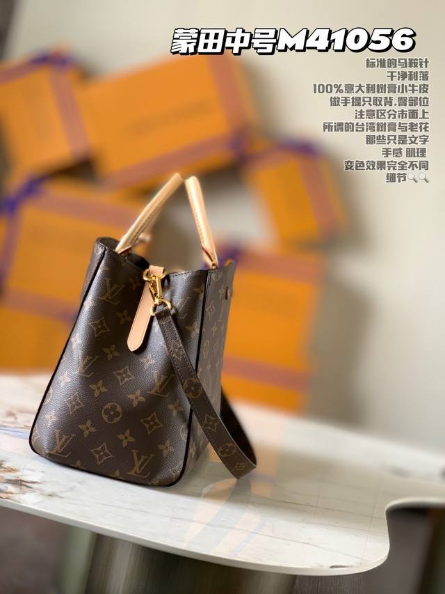 Original price M41056 full steel replica! Size 33 Made of iconic Monogram canvas, the Montaigne handbag combines a playful and crisp exterior design with a spacious and organized interior space, making it an ideal business bag. This handbag comes with a detachable shoulder strap and can be carried by hand, arm or shoulder.