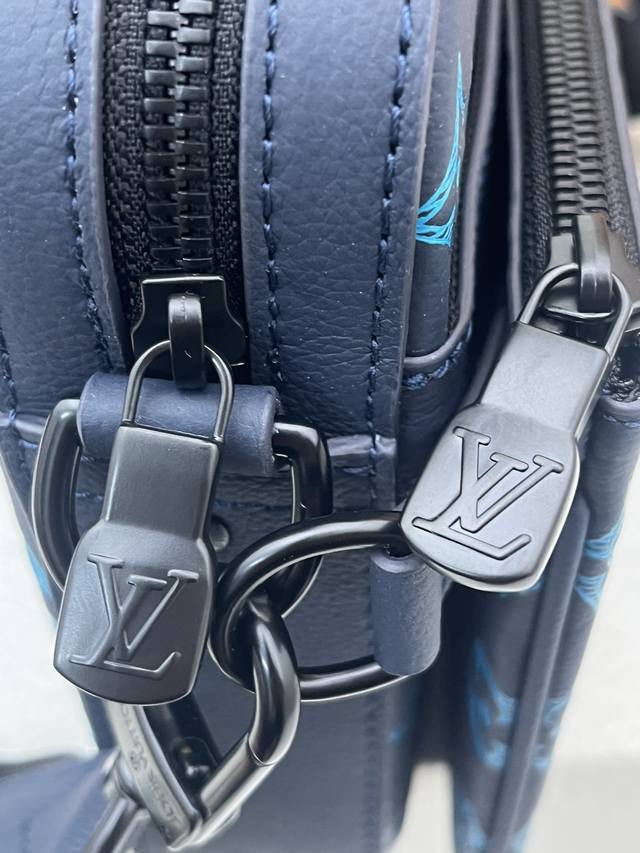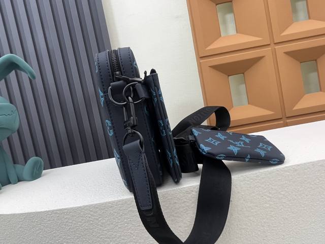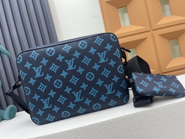 Top original home real shot M46604 blue M46602 black M46603 gray This Trio messenger bag is made of Monogram embossed cowhide leather. The zipper front pocket and the small coin purse on the shoulder strap are detachable, which enriches the functional design together with the main compartment. The detachable and adjustable jacquard fabric shoulder strap is marked with the brand logo, making it comfortable to carry on the shoulder or crossbody. Size: 25