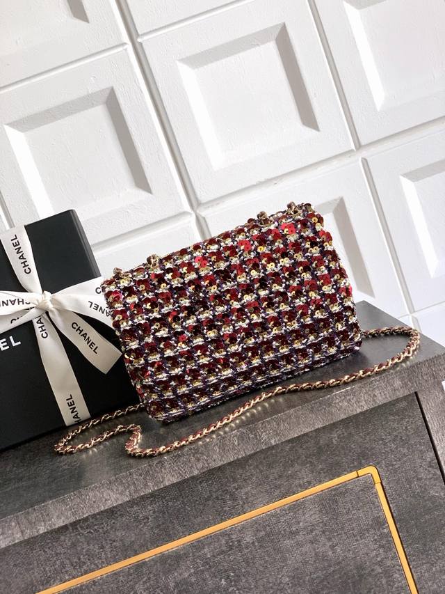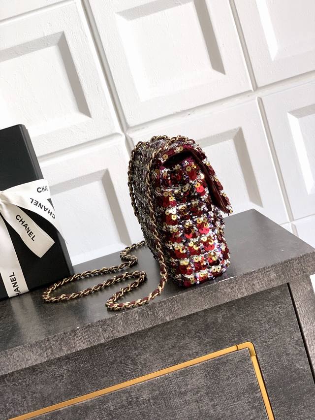 Top original red with black Ohanel 25A dense sequins, shape Cf super shiny sequins sequins bag connection reservation autumn and winter filter, So Black street cool real thing is simply beautiful super rare hot sequins cost-effective most worth buying this season's bag color sequins splicing, sparkling and lovely, it is simply infinitely magnified its charm temperament elegance fashion trend is its synonym, as a dinner bag is also very suitable is a bag that can be treasured for a lifetime, 20Cm6171