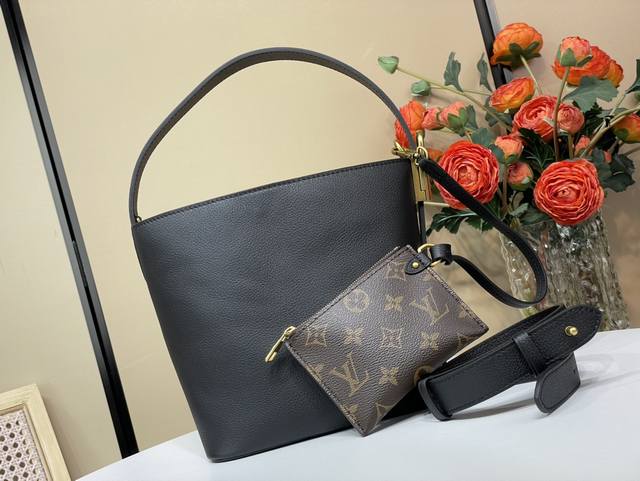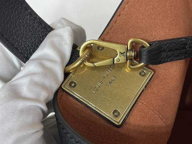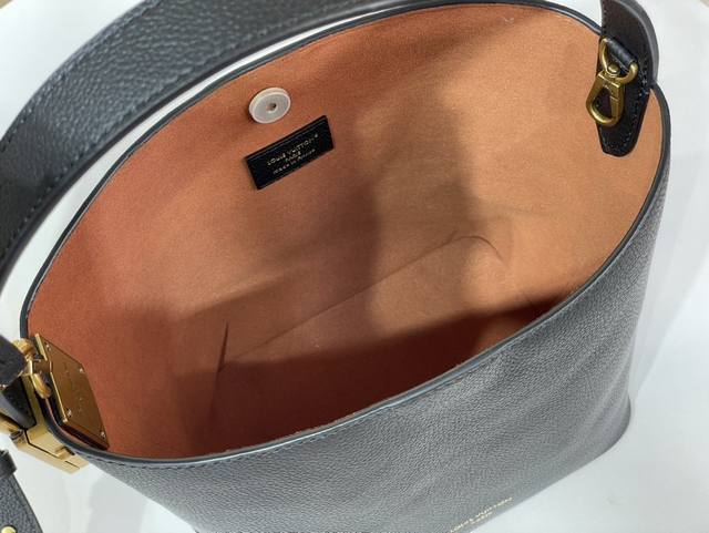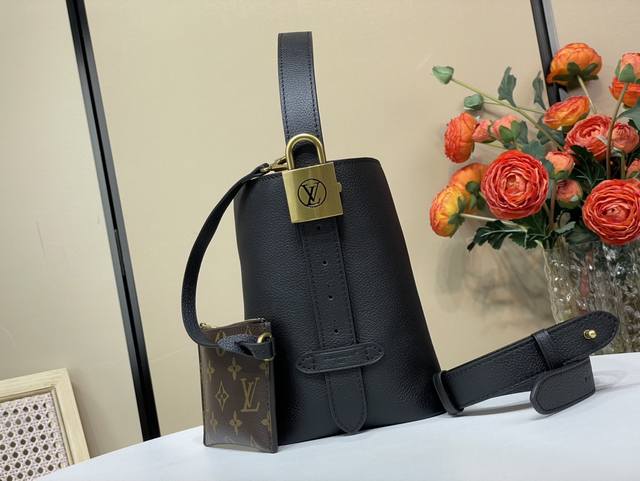 From the Low Key series, the compact bucket bag is made of grained cowhide leather, which can be carried in a variety of ways for day and night occasions. The old metal parts convey a retro meaning, and the Lv padlock and detachable Monogram pocket highlight the brand style.