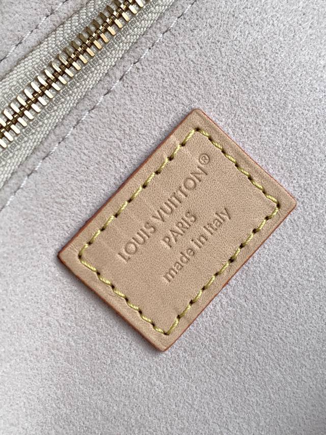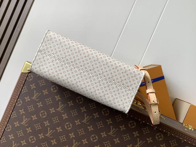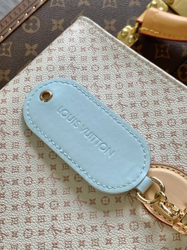 As part of the Lv Romance Ys series, the Onthego Pm adds a touch of brilliance this season by combining the brand's iconic Damier and club tag names in a unique way. This elegant handbag is designed in calfskin and decorated with a playful luggage tag charm, including a mirror, which is ideal for applying makeup. Tie the longer strap and wear it on the body.