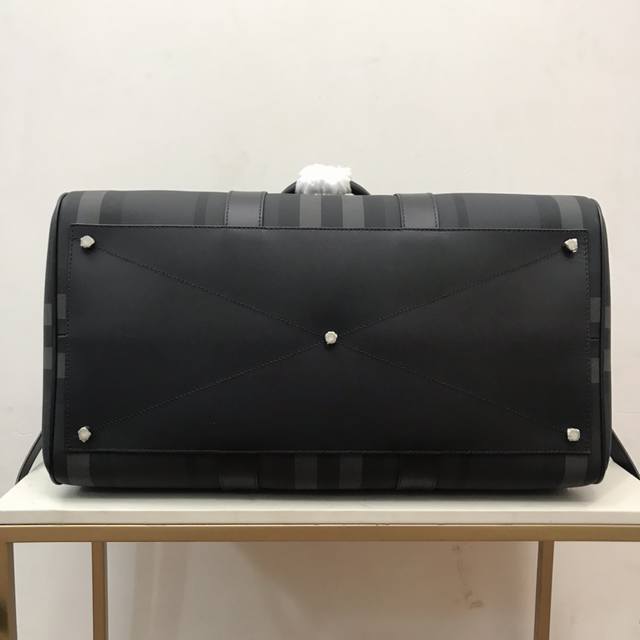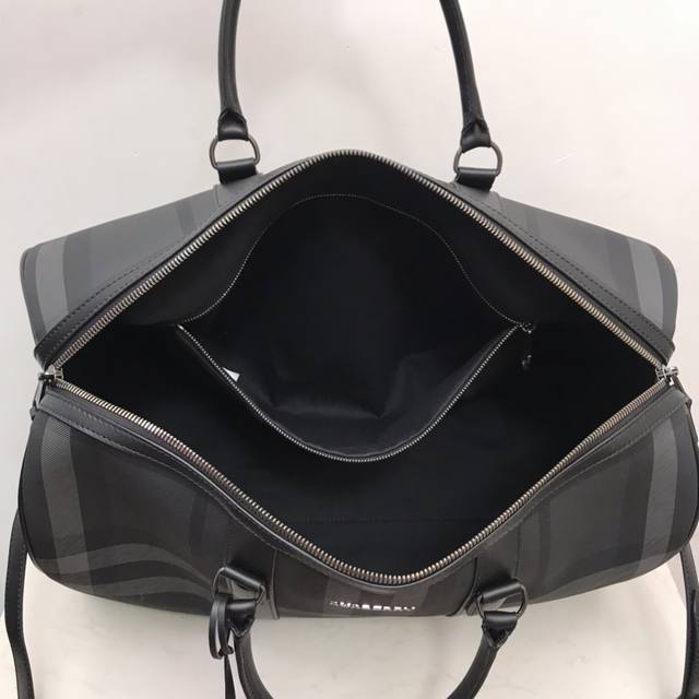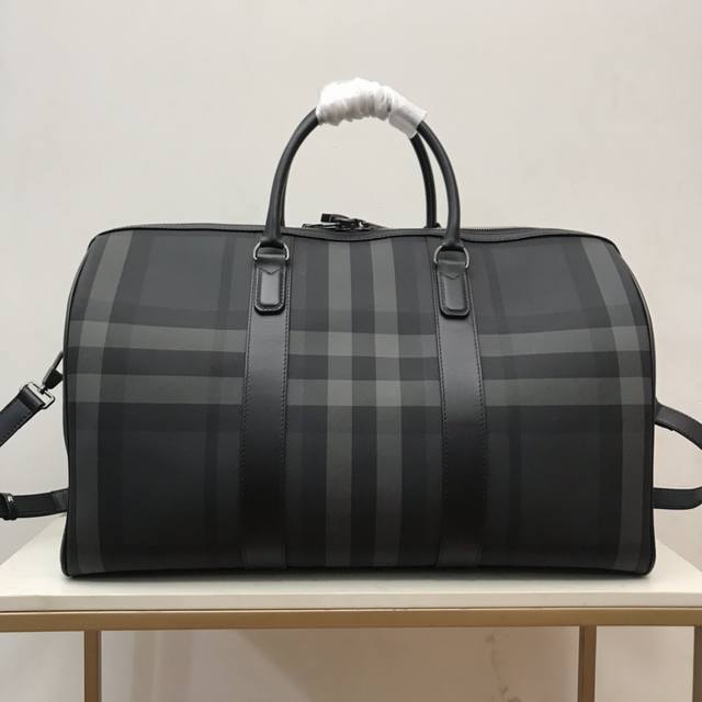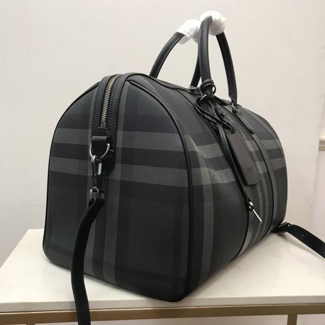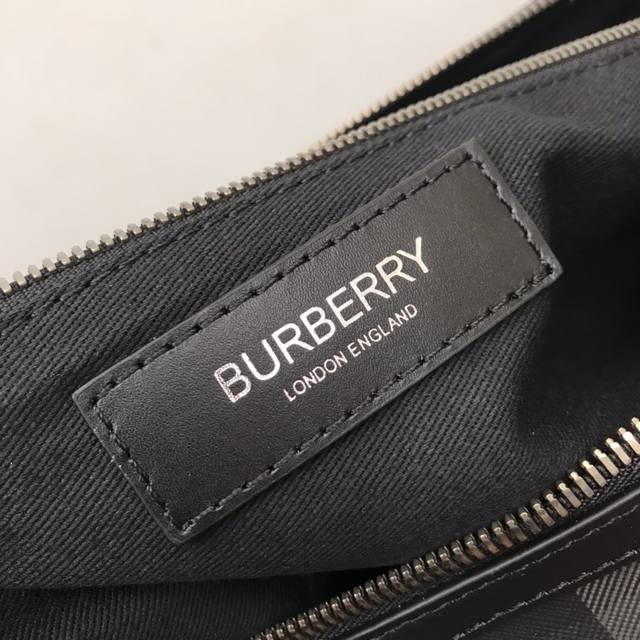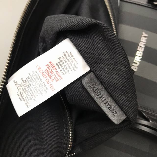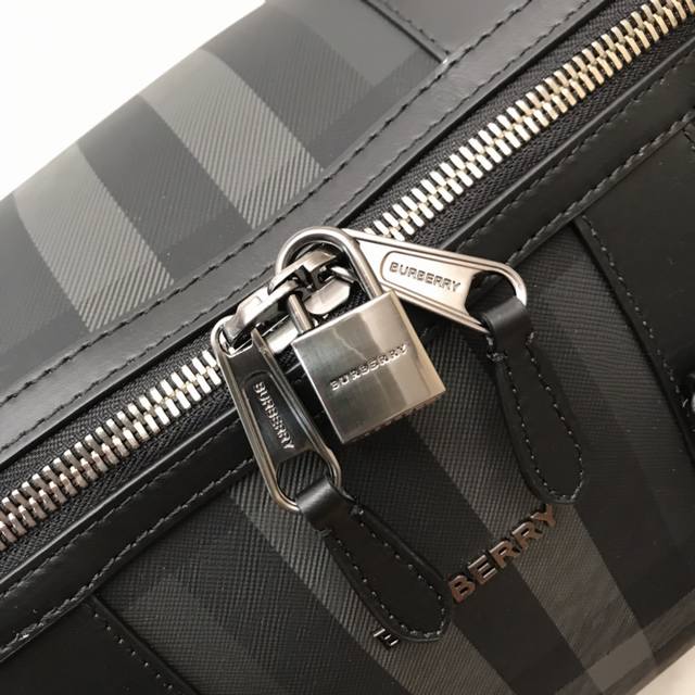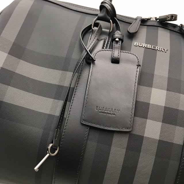 Top-quality original stand-up handbag from B, decorated with Bur check. Smooth calfskin trim, with leather-wrapped padlock and luggage tag.