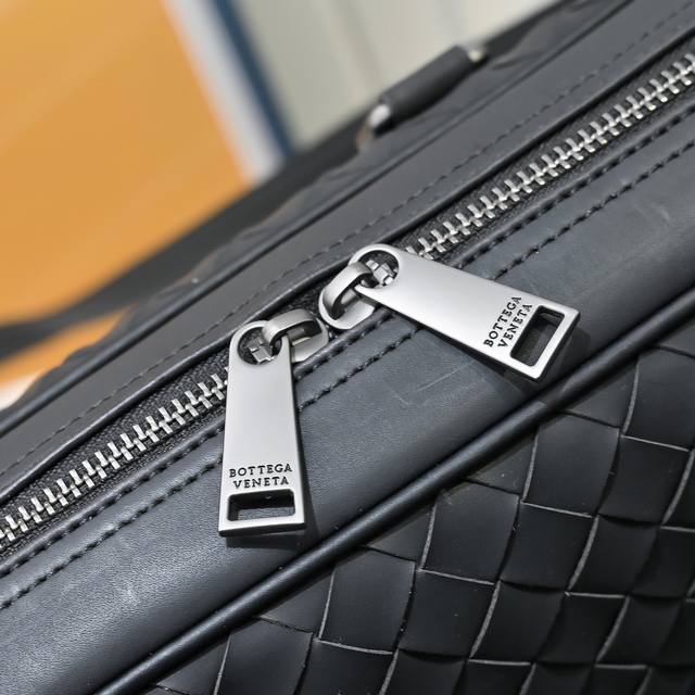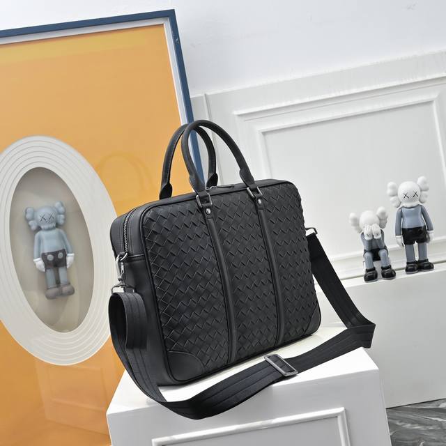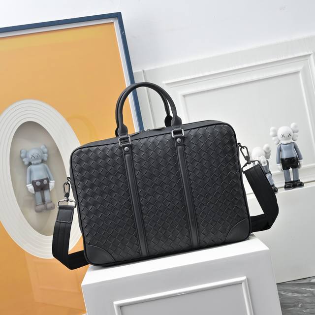 Bv Bottega Veneta's latest upgraded version of the Bv briefcase is available on the official website. Made of premium leather, it feels soft and comfortable. It comes with genuine black steel hardware and a special lining. Size: 28x7x38cm 88301