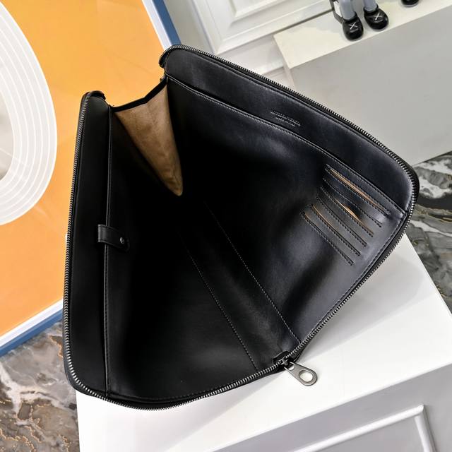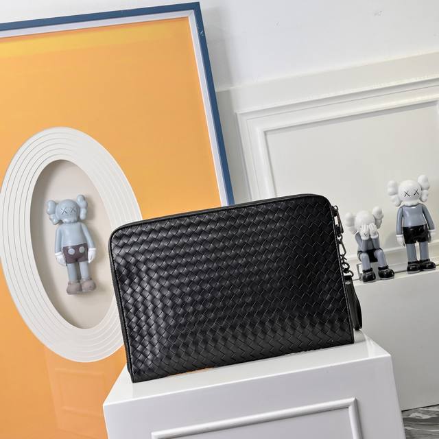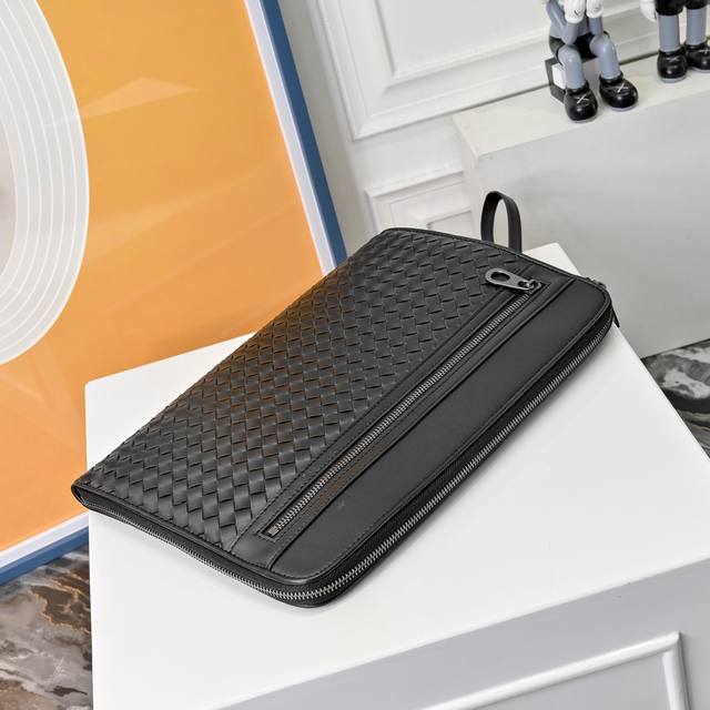Bv upgraded version of Bottega Veneta's latest Bv clutch bag, synchronized with the official website, made of top-grade leather, feels soft and comfortable, superb counter original black steel hardware, special lining size 33X1X23cm