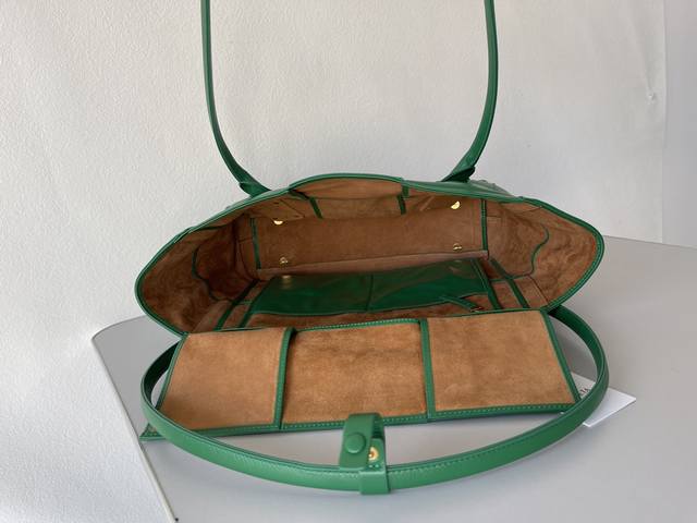 48Cm DDD Bottega Veneta DDD Arco48 Oil-waxed Leather ~ The exterior is made of imported oil-waxed cowhide, while the lining is upgraded from Oxford leather to a sheepskin lining; the weight is undeniably much lighter; the ultra-high-end Arco, made with imported Ducox Saffron and some hand-stitched threads, has a visibly high-quality feel. Who wouldn't love a bag that's perfect for a nomadic lifestyle? DDD The soft leather Arco is truly very, very light and has a great feel! DDD Style Number: 618463 DDD Size: 48X13X27.5Cm DDD Color: Emerald Green DDD