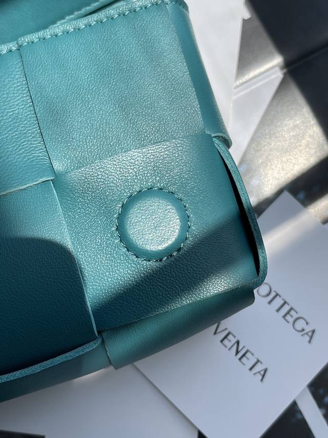 Bottega Veneta Belt Bag DDD This newly released mini belt bag is so cute! The hand-woven lambskin mini cassette exudes adorable charm that's simply irresistible. DDD Size: 9.5*17.5*5cm DDD Style Number: 639367 DDD Color: Wild Duck Green DDD