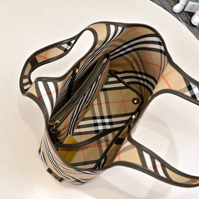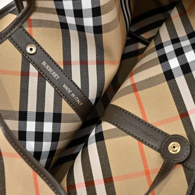 Burberry's latest soft and structured tote bag, crafted from cotton twill fabric and meticulously made in Italian workshops. Adorned with the new season's Burberry check pattern. The unlined version is lightweight and features smooth calfskin trim, along with a detachable zippered pouch. From Burberry's classic collection, this is a wardrobe essential that embodies the brand's signature style. Dimensions: 41