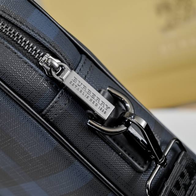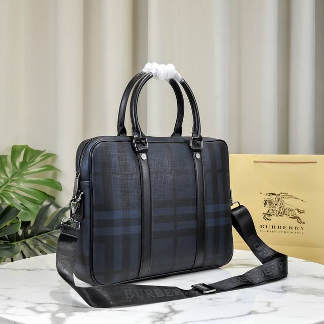 Model: 9645-1. Burberry boutique best-selling men's bag, original quality, original cowhide leather with high-end imported hardware, comfortable leather, excellent feel, and a more accurate shape. Even more beautiful in person! Size 38-28-6, Blue.