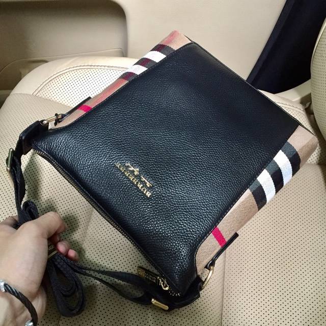 New Burberry men's shoulder bag, same quality as in boutiques, business style, absolutely amazing feel! Imported cowhide lining with original exclusive fabric! Clear logo! High-end style, a must-have for the modern man, quality as shown in the pictures. Style number: 9005-1. Size: 24