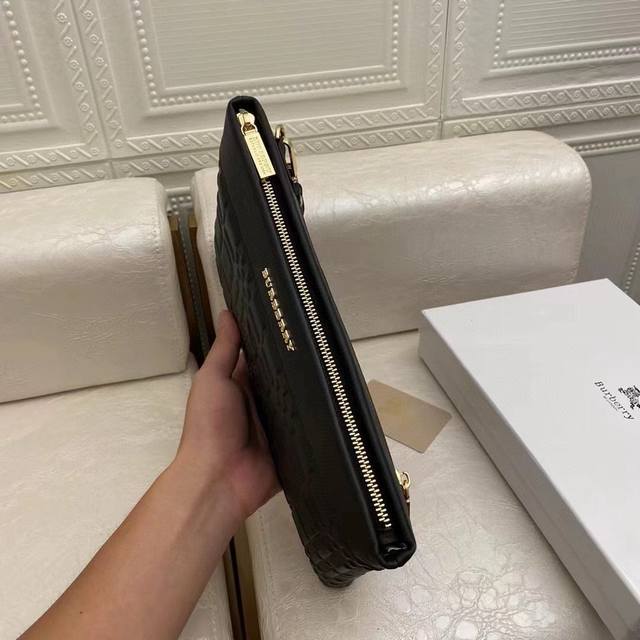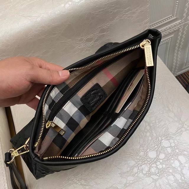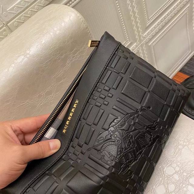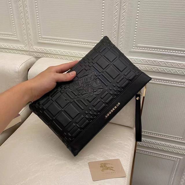 p Top-quality original Burberry men's clutch bag, latest style, hot new arrival, real product photos, no additives or effects, top-grade imported top layer leather, ultra-high-definition leather texture, boutique hardware, super smooth zipper, top-grade oiled edges, unique leather craftsmanship by top designers, casual style, super soft and comfortable feel, clear leather texture, five stitches per inch by top craftsmen, exquisite and perfect workmanship, unique casual high-end style. Comes with a high-end gift box. Model 33061-1. Color: Black. Dimensions: 29X18X3Cm.