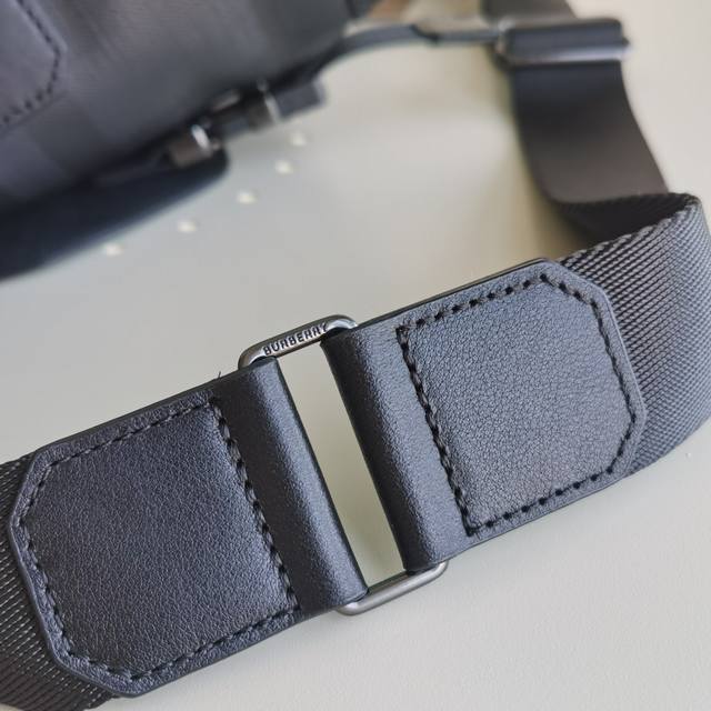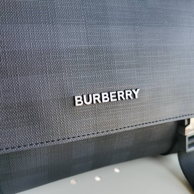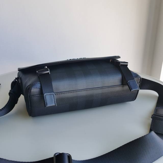 This premium-quality, original leather Burberry-style messenger bag features the brand's charcoal check pattern, smooth leather trim, and a logo design. A zippered pocket provides easy storage for small items. An adjustable shoulder strap adds a practical touch. This piece is made from at least 30% bio-based materials, primarily derived from renewable natural resources like plants and castor oil.