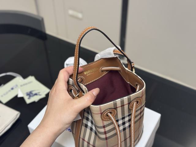 Comes with box. Size: 16*18cm. Burberry | Super cute bucket bag~ Available in multiple colors, can be carried by hand or worn crossbody~