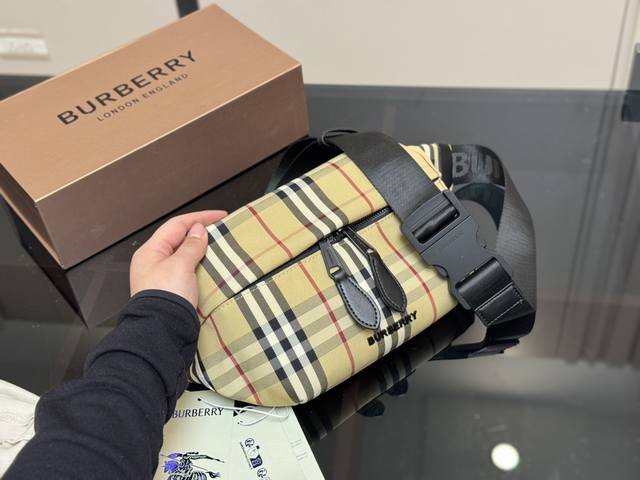 Comes with box. Size: 25.15cm. Burberry waist bag! Sweet and edgy! This waist bag is so easy to wear! You'll definitely love it! Unisex style!