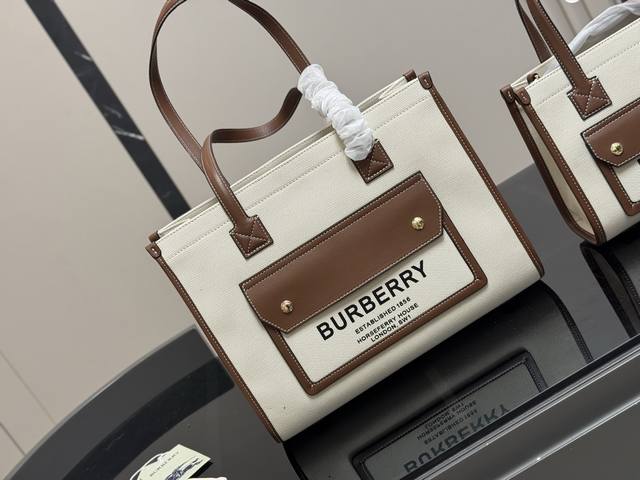 Size: 33.25cm x 23.19cm Burberry Freya Canvas Tote The square shape exudes a ret