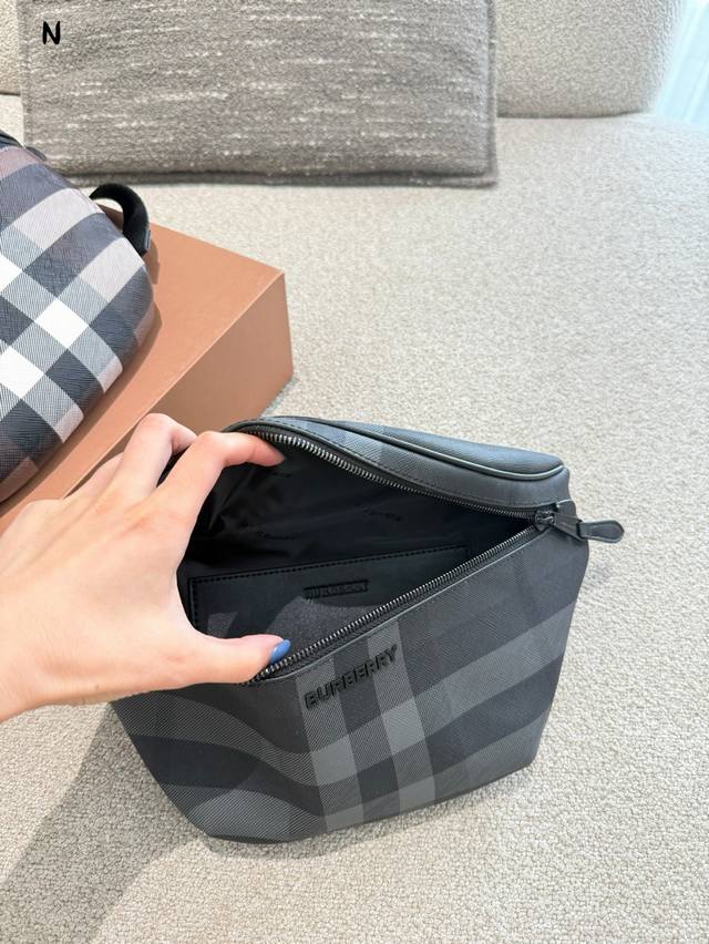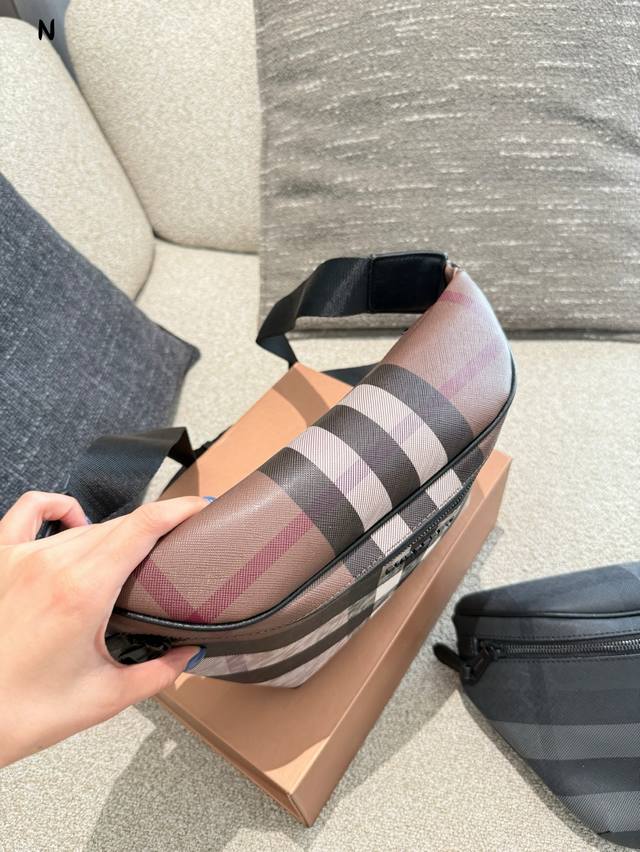 Burberry waist bag. A crossbody bag that can be both sweet and savory. Burberry's latest birch brown check waist bag features the iconic check pattern, trimmed with leather trims and the brand's logo. It can be worn cross-body or tied at the waist using the shoulder strap. #BagCollection#Men'sCrossbodyBag#Men'sBag
