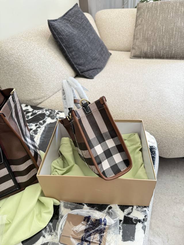 Burberry's latest tote bag, made of classic Italian plaid fabric and calfskin #crossbody shoulder bag#women's bag#vintage bag#Burberry, with real gold hardware, an adjustable crossbody shoulder strap that can be worn crossbody or by hand, and a snap closure at the top. The workmanship is impeccable, perfect and exquisite, with a large capacity, it can be used in all travel situations. It's really beautiful. Sizes: 40-30-16 cm M25 cm small with box large without box