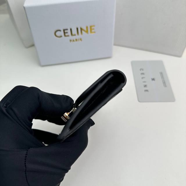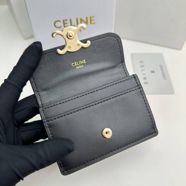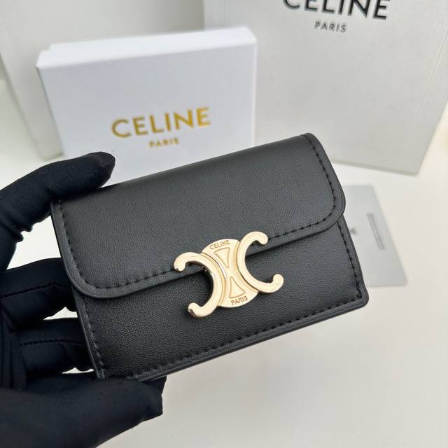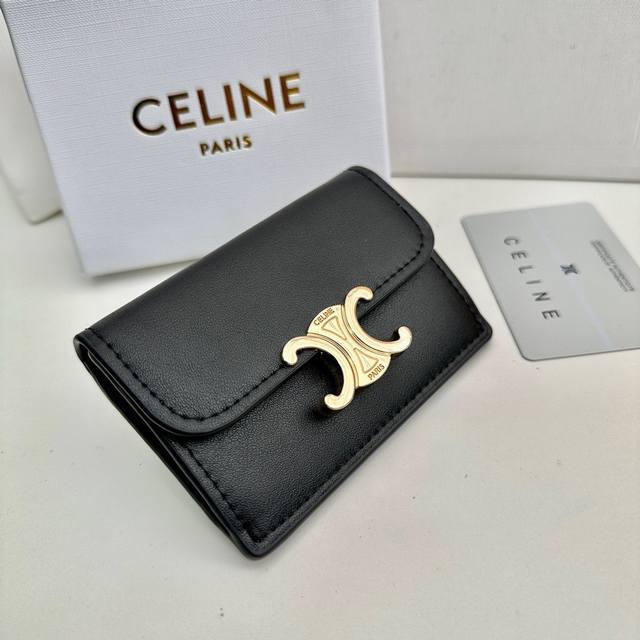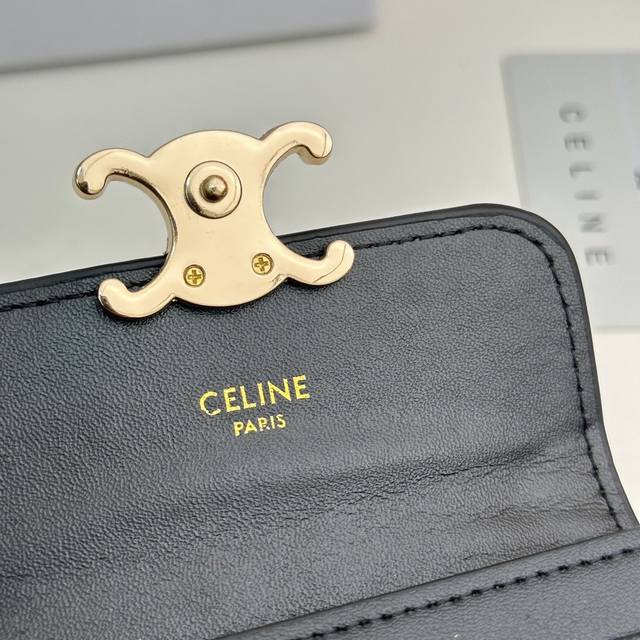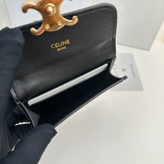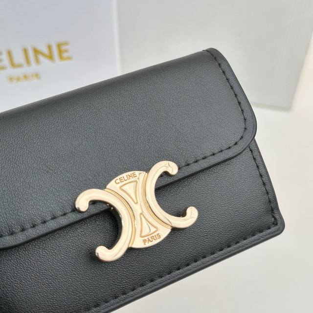 Celine 16334 Color: Black Size: 10.5 X 7 X 1 New Triumph Arch Card Holder, Celine Short Card Case A Stunning Series, With The Boutique, Made From Top-Grain Cowhide Leather, Elegant And Fashionable!