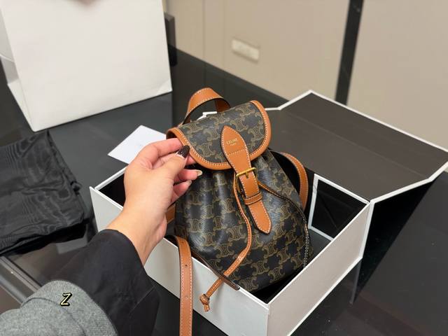 Comes with a folding box. Size: 18.20cm. Celine backpack in cowhide leather. New mini version is here! The high-quality leather buckle design is amazing!