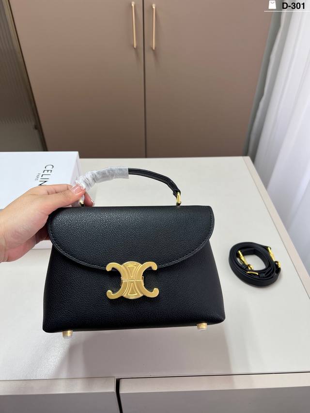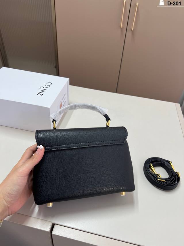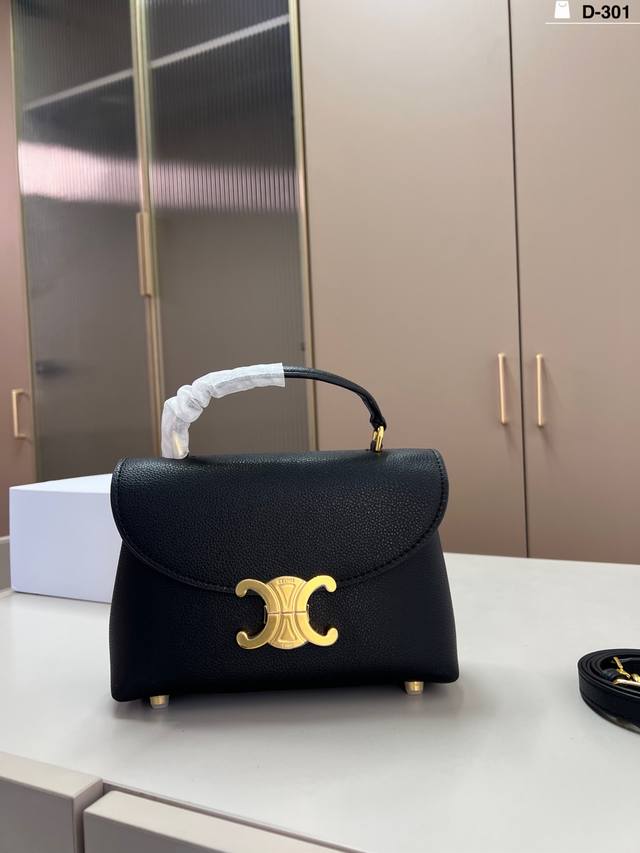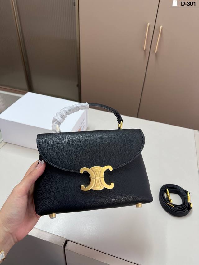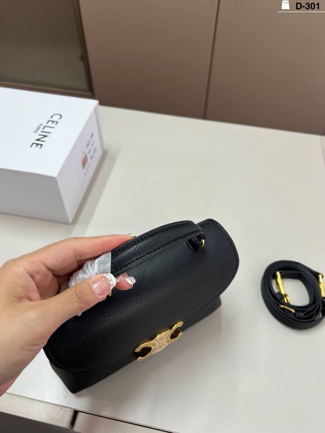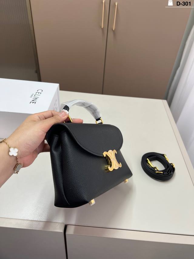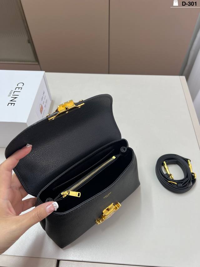 Celine's new Teen Nino style messenger bag. The Arc de Triomphe-style handbag exudes a sophisticated vibe. It comes with a long shoulder strap for hand-carrying or crossbody wear. The D-301 size is 21 x 13 cm, foldable.