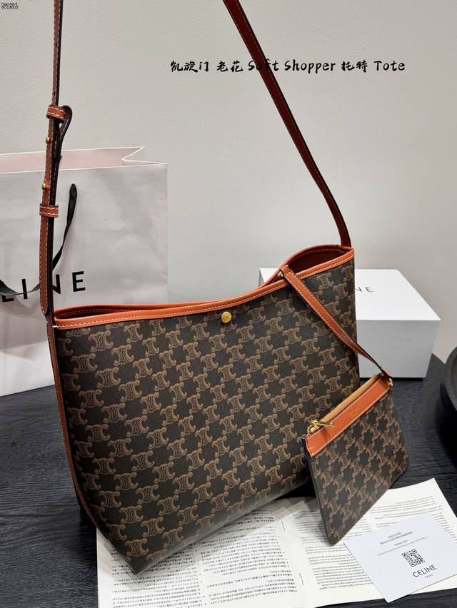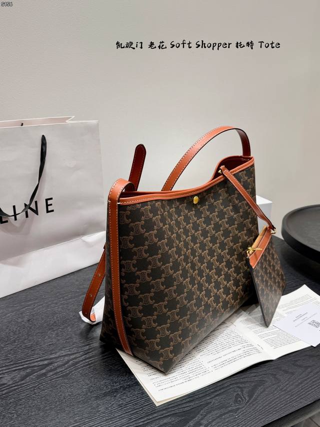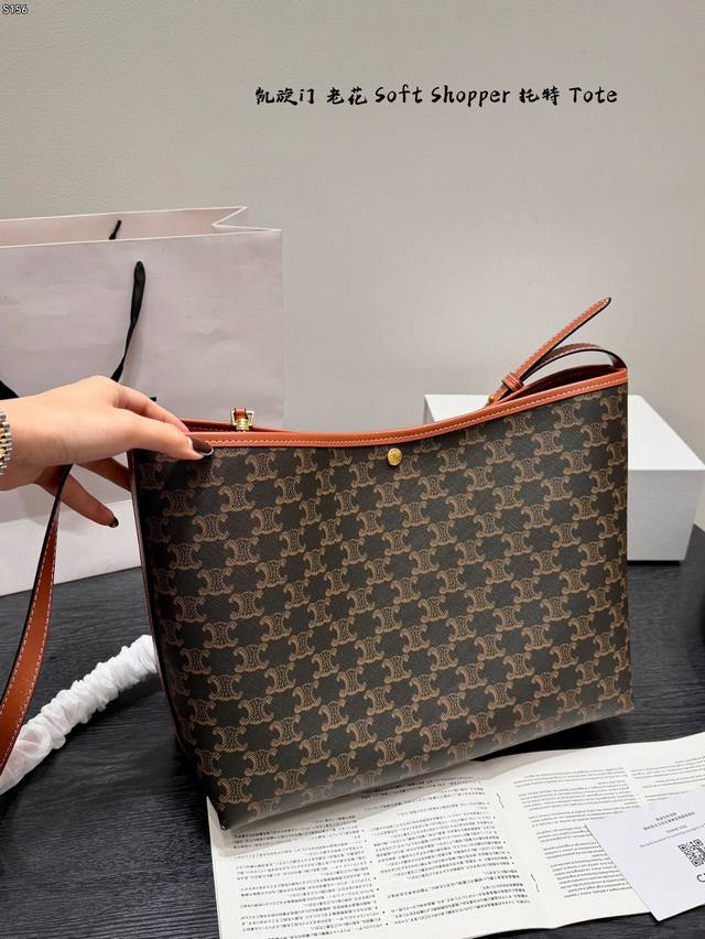 Gift Box Packaging DDD Upgraded Version DDD Celine Soft Shopper Tote DDD I absolutely love this Arc de Triomphe monogram shopping bag!! DDD Not only can it hold a laptop, but it's also beautiful and practical DDD It's totally my dream bag! Tested and it easily fits a 14-inch laptop DDD Super lightweight, super convenient, and super spacious! DDD A blessing for working women DDD Size 31*25 DDD