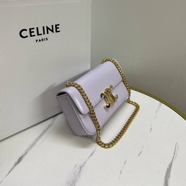 Authentic Product DDD Celine Spring/Summer Collection New Short Chain Shoulder Bag. The overall size is similar to the older leather shoulder strap shoulder bag, but the design replaces the leather strap with a chain. The chain's texture gives the bag a more luxurious and high-profile feel, always exuding elegance. DDD Style Number: 197993 Light Lavender Purple with Original Packaging DDD Dimensions: 20.5-10.5-4 DDD