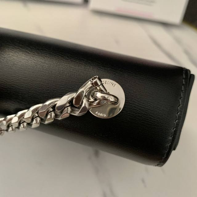 Authentic Product DDD Celine Spring/Summer Collection New Short Chain Shoulder Bag. The overall size is similar to the older leather shoulder strap shoulder bag, but the design replaces the leather shoulder strap with a chain. The chain's texture gives the bag a more luxurious and high-profile feel, always exuding elegance. DDD Style Number: 197993 Black/Silver with Original Packaging DDD Dimensions: 20.5-10.5-4 DDD